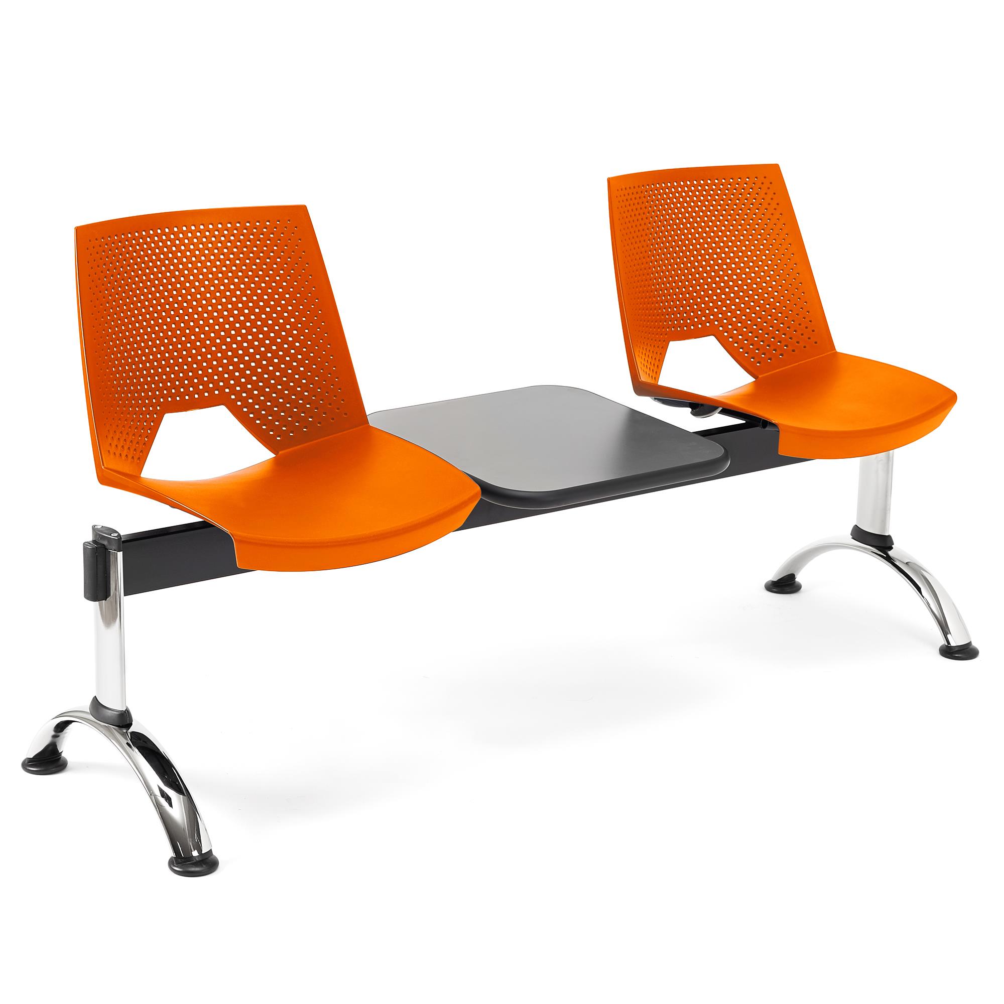 2-Zits Wachtbank met Tafeltje ENZO, Metalen Structuur, Oranje Kunststof