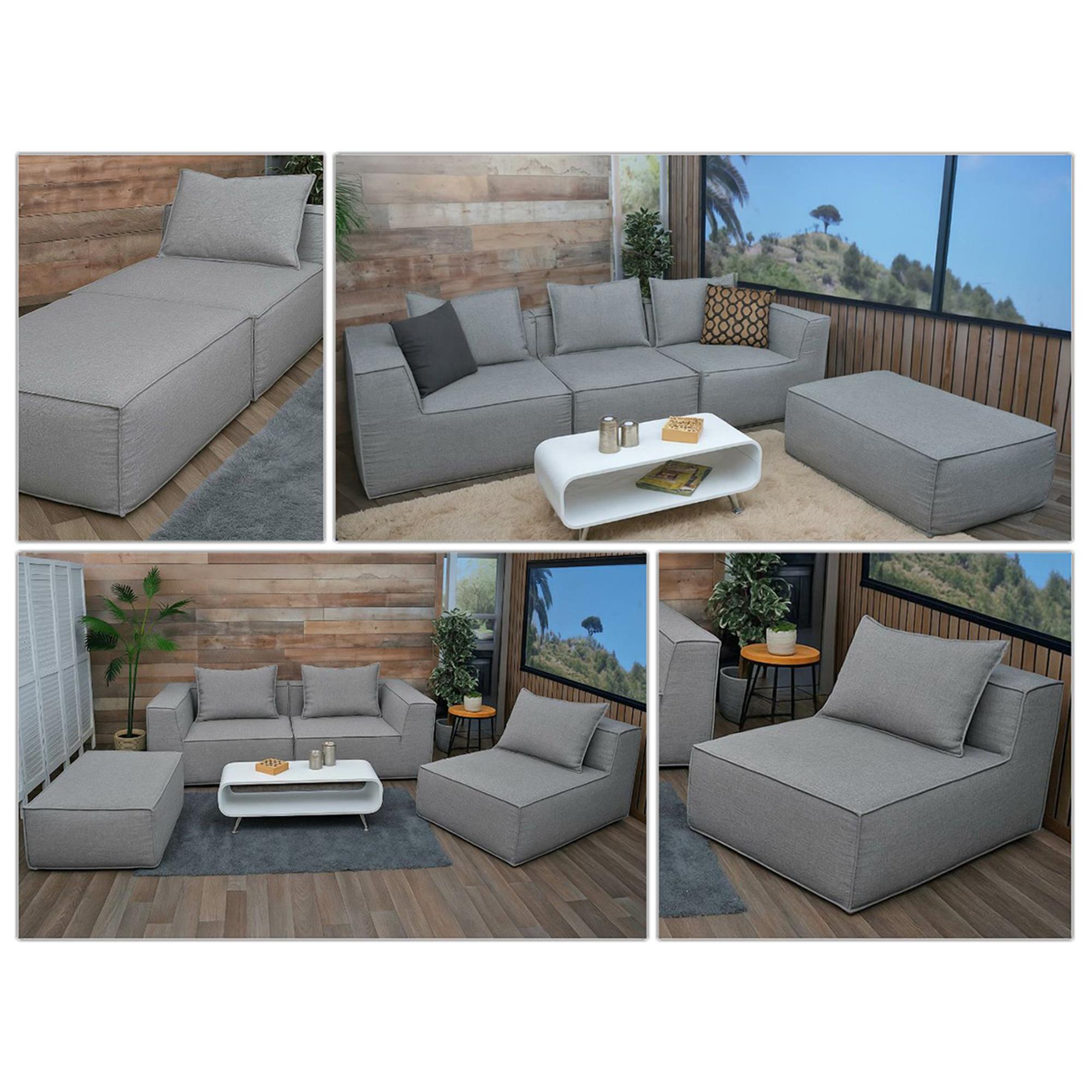 2-zitsbank NANUK, Modulair, Dikke Vulling, Exclusief Ontwerp, in Lichtgrijze Stof
