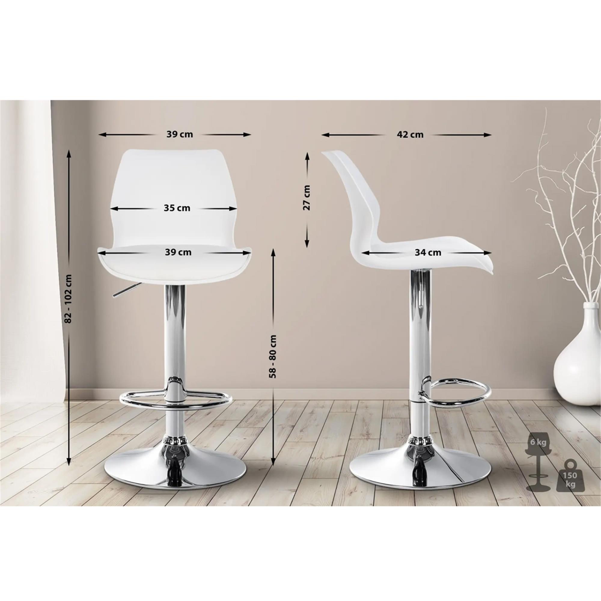 Barkruk DALIAN, Uniek Ontwerp, met Voetsteun, Leder, Kleur Wit