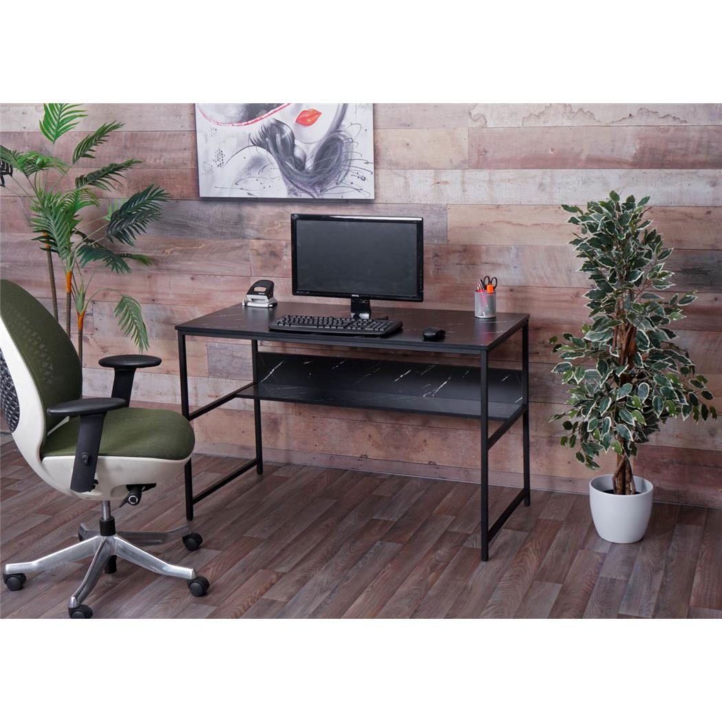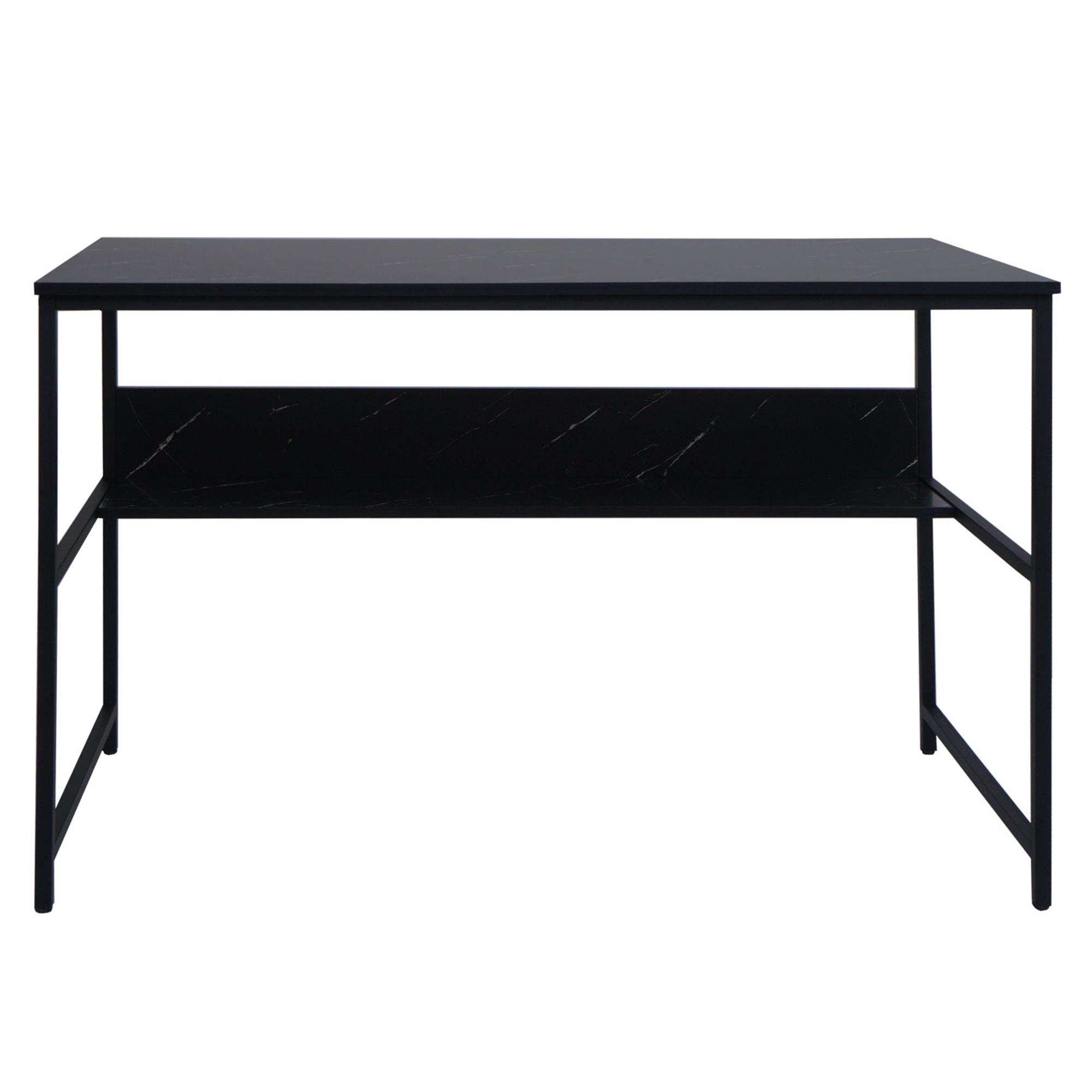 Bureau EVOKE, 120x60x78 cm, met Opbergplank In MDF en Metaal, Zwart Marmer look