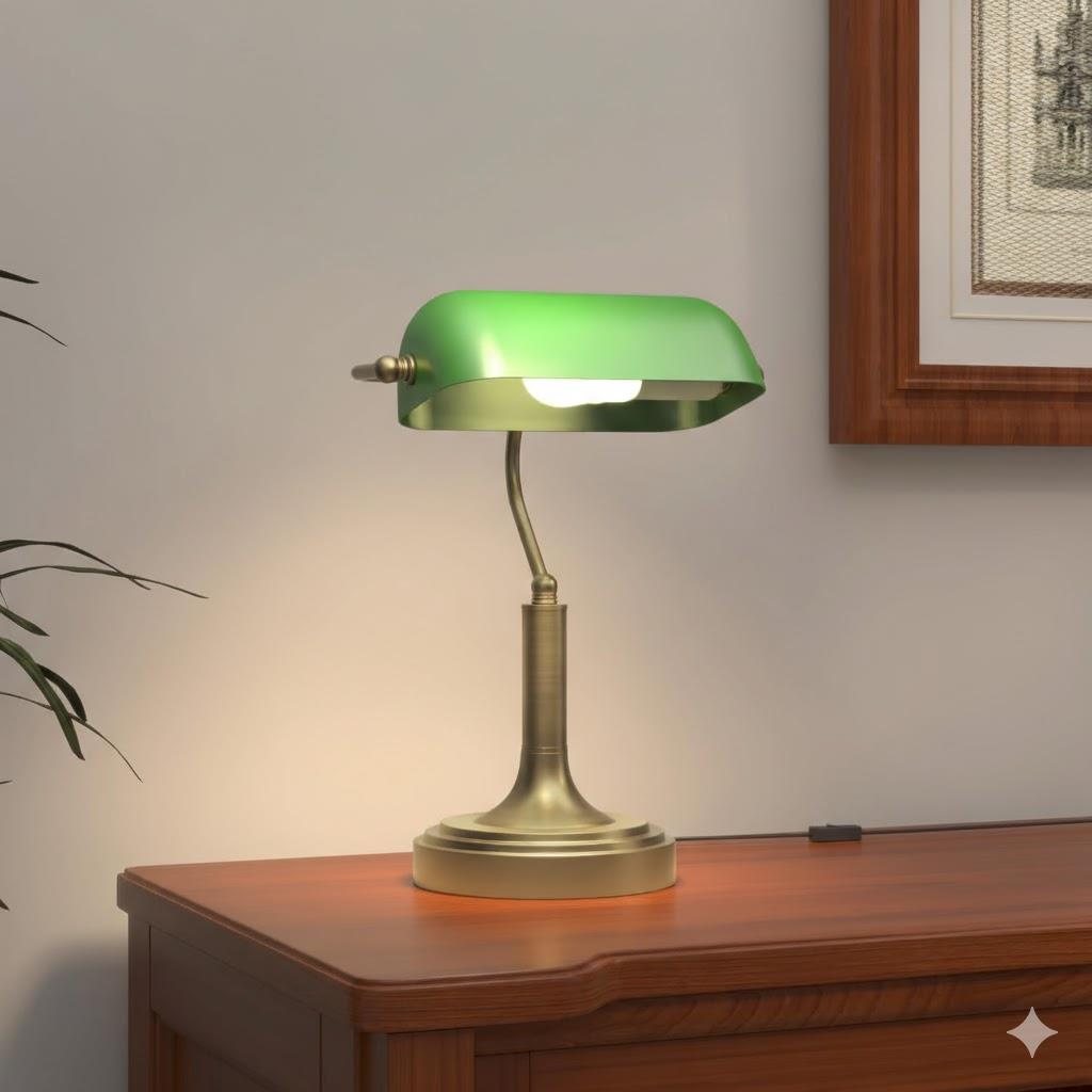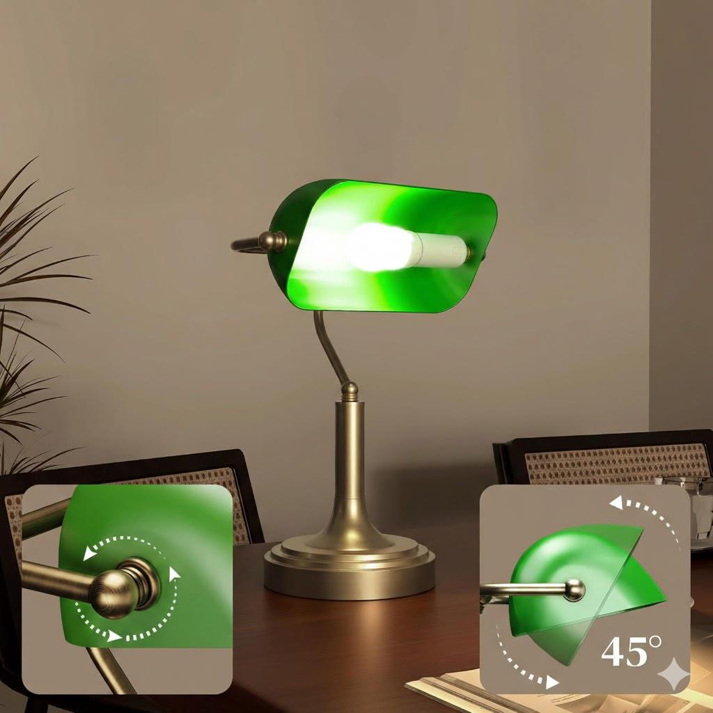 Kortom, dit is een zeer veelzijdige en functionele lamp met een spectaculair vintage design in bankiersstijl dat zeker de aandacht zal trekken. Het ideale model voor uw bureau of kantoor. Aarzel niet langer en voeg een vleugje elegantie toe aan uw werkplek.