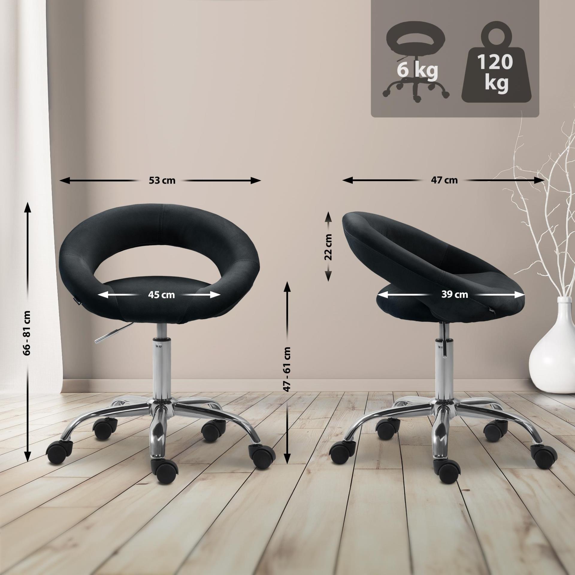 Bureaustoel AMANDA, Exclusief Design, Metalen Frame, in Zwarte Fluwelen Stof