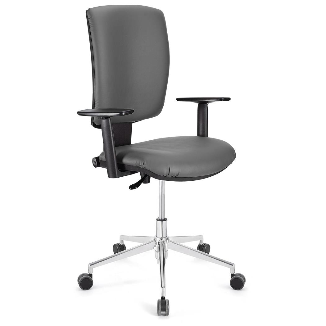 Bureaustoel ATLAS PRO LEDER, Verstelbare Armleuningen en Rugleuning, Metalen Onderstel, Grijs