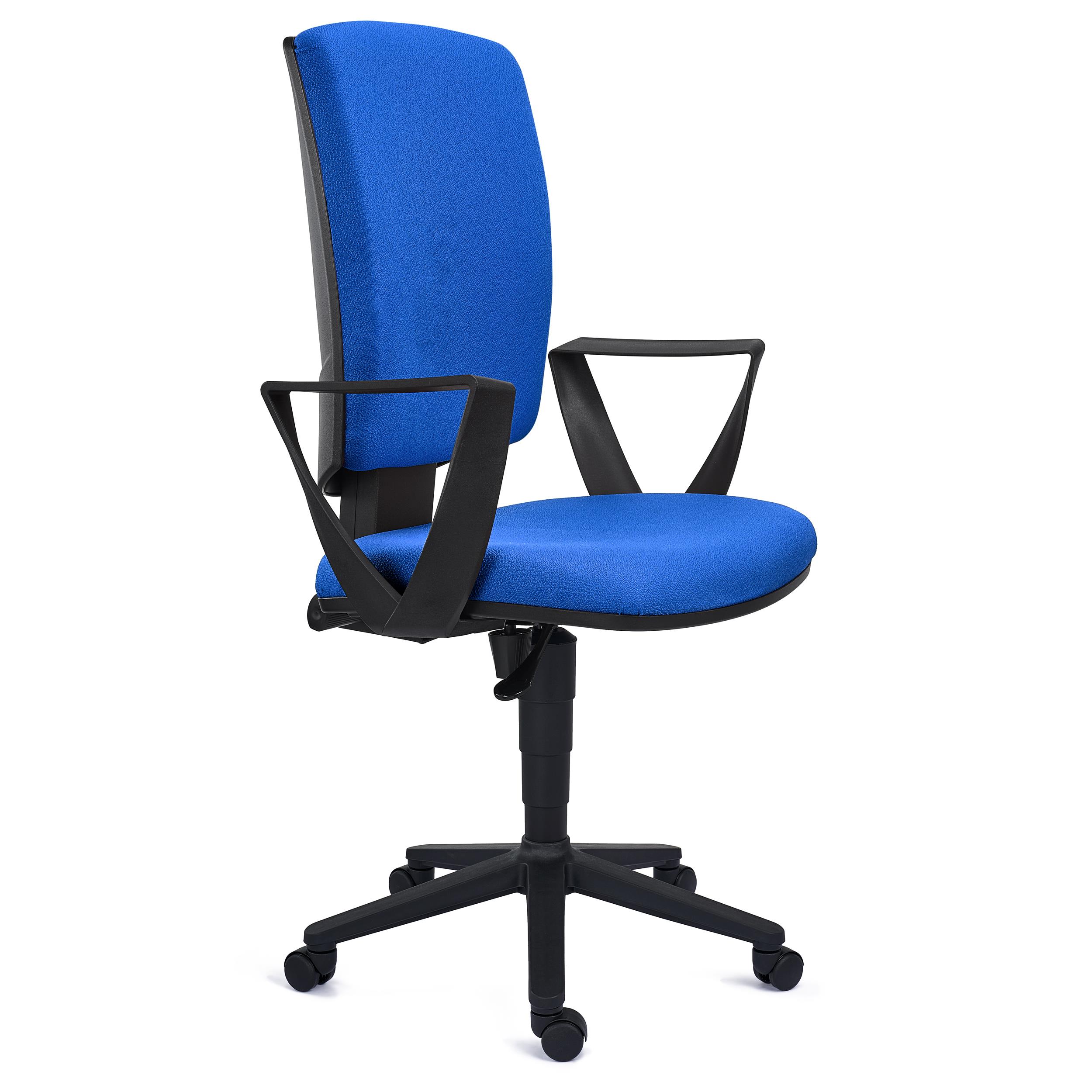 Bureaustoel ATLAS, Verstelbare Rugleuning, Dikke Vulling, in Blauwe Stof