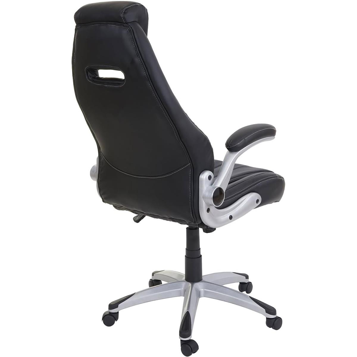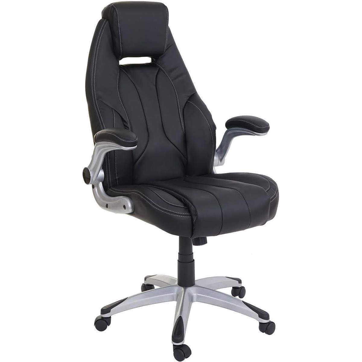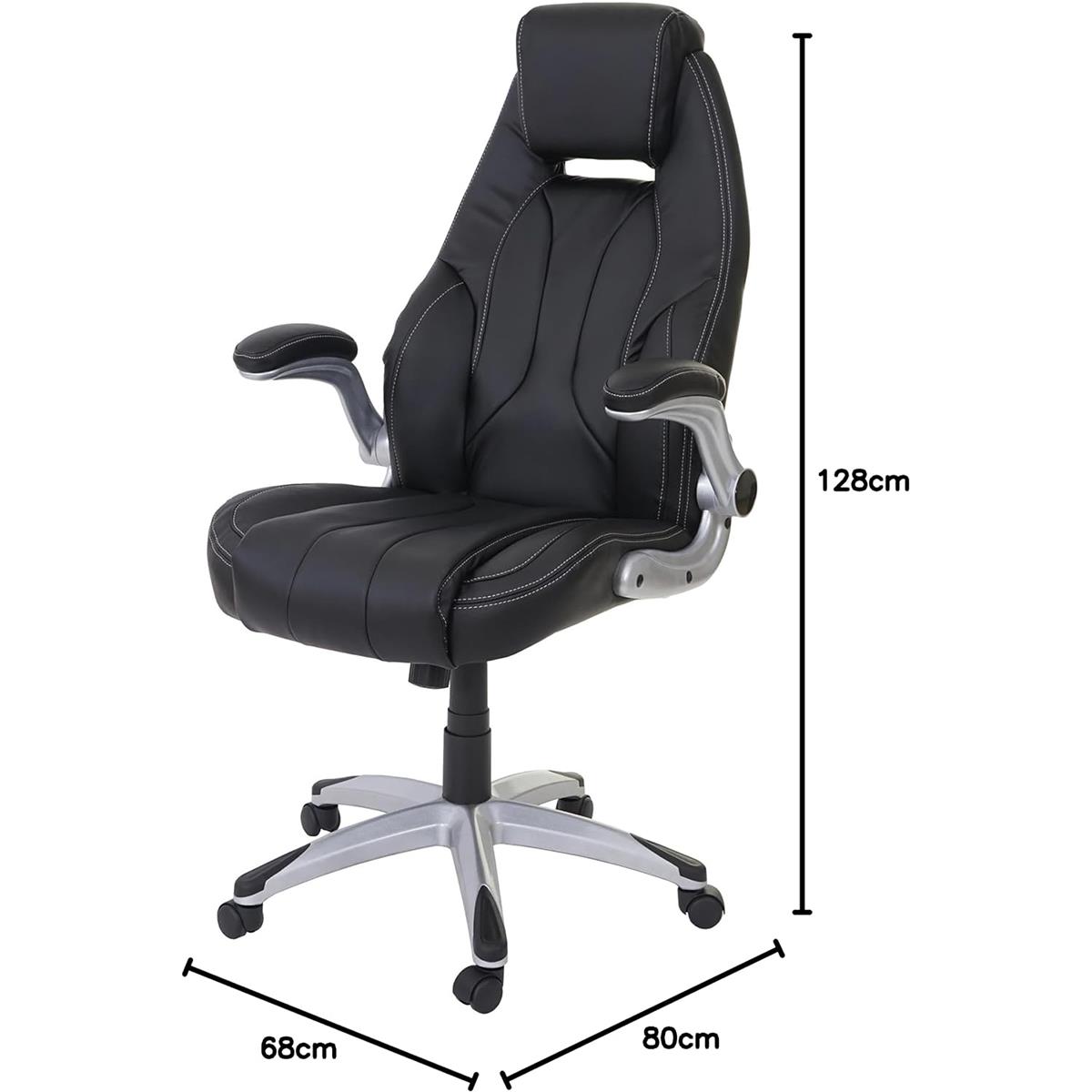 Bureaustoel BOBI, Dikke Vulling, Opklapbare Armleuningen, in Zwart Leder