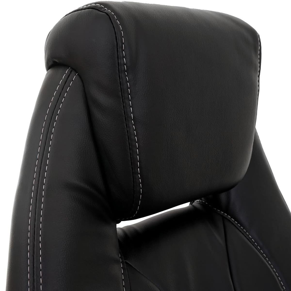 De stoel heeft een kantelmechanisme, een systeem waarmee u het kantelen van de stoel kunt vergrendelen of ontgrendelen. Daarnaast is het mogelijk om de weerstand van deze beweging aan te passen. Dit mechanisme is gemakkelijk in gebruik en ideaal om even te pauseren tijdens uw bezigheden, vooral handig wanneer u de stoel langdurig gebruikt. Let op het kwaliteitsmateriaal dat is gebruikt om de stoel te vervaardigen. Hij is bekleed met synthetisch leder dat gemakkelijk schoon te maken en te onderhouden is, een bestendig materiaal dat perfect is voor dagelijks gebruik. Ook vernoemenswaardig is het robuuste en resistente onderstel, die de stabiliteit en veilgheid van de stoel volkomen garanderen.