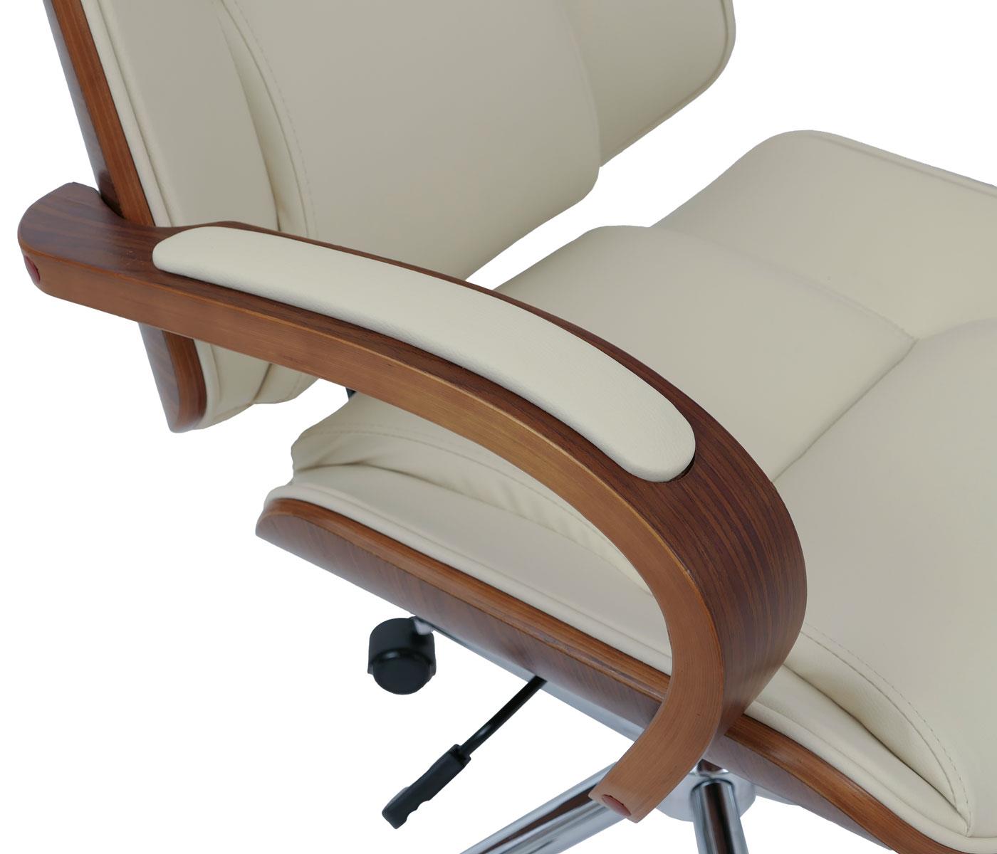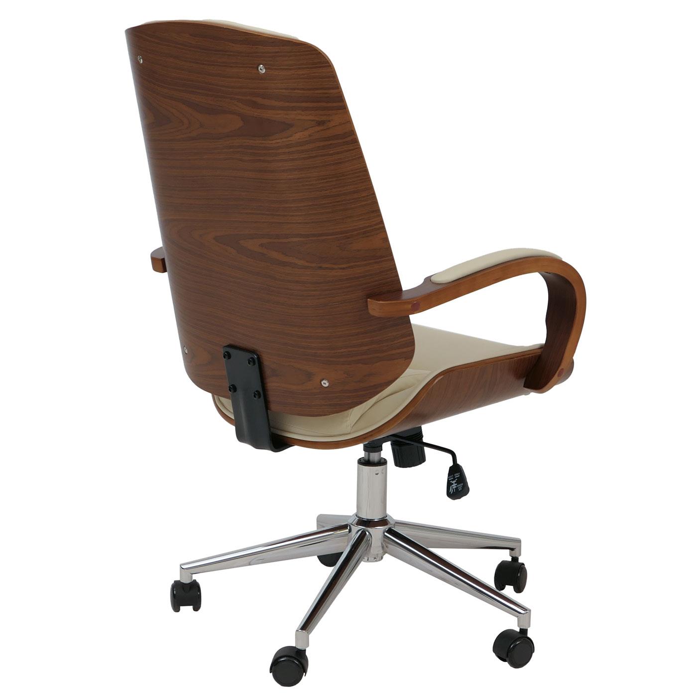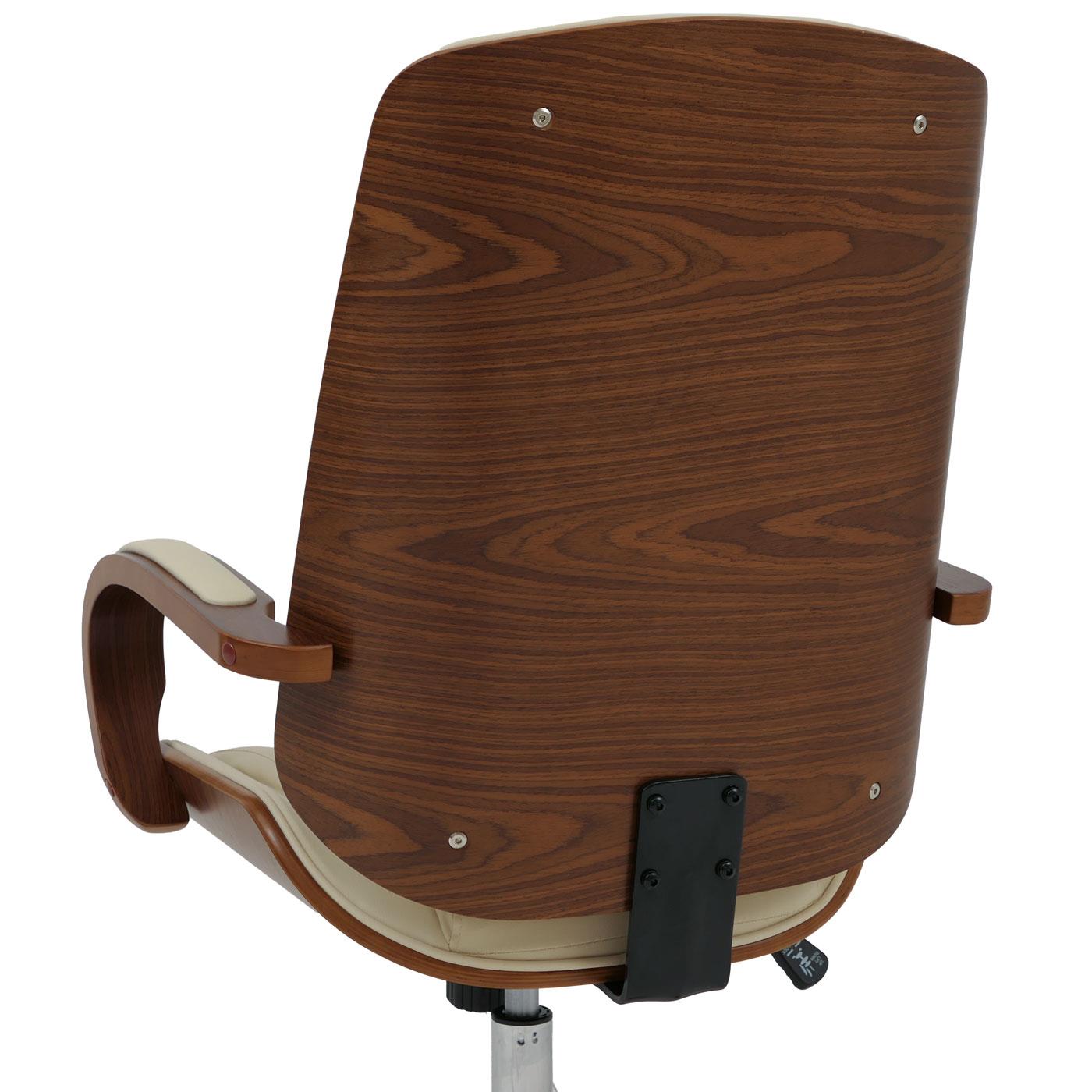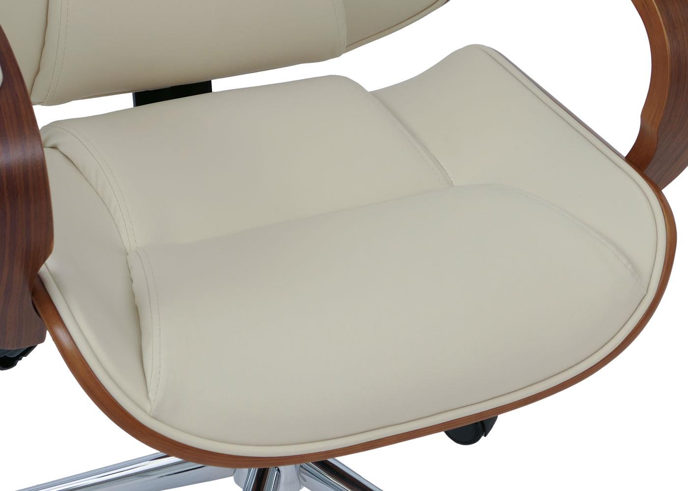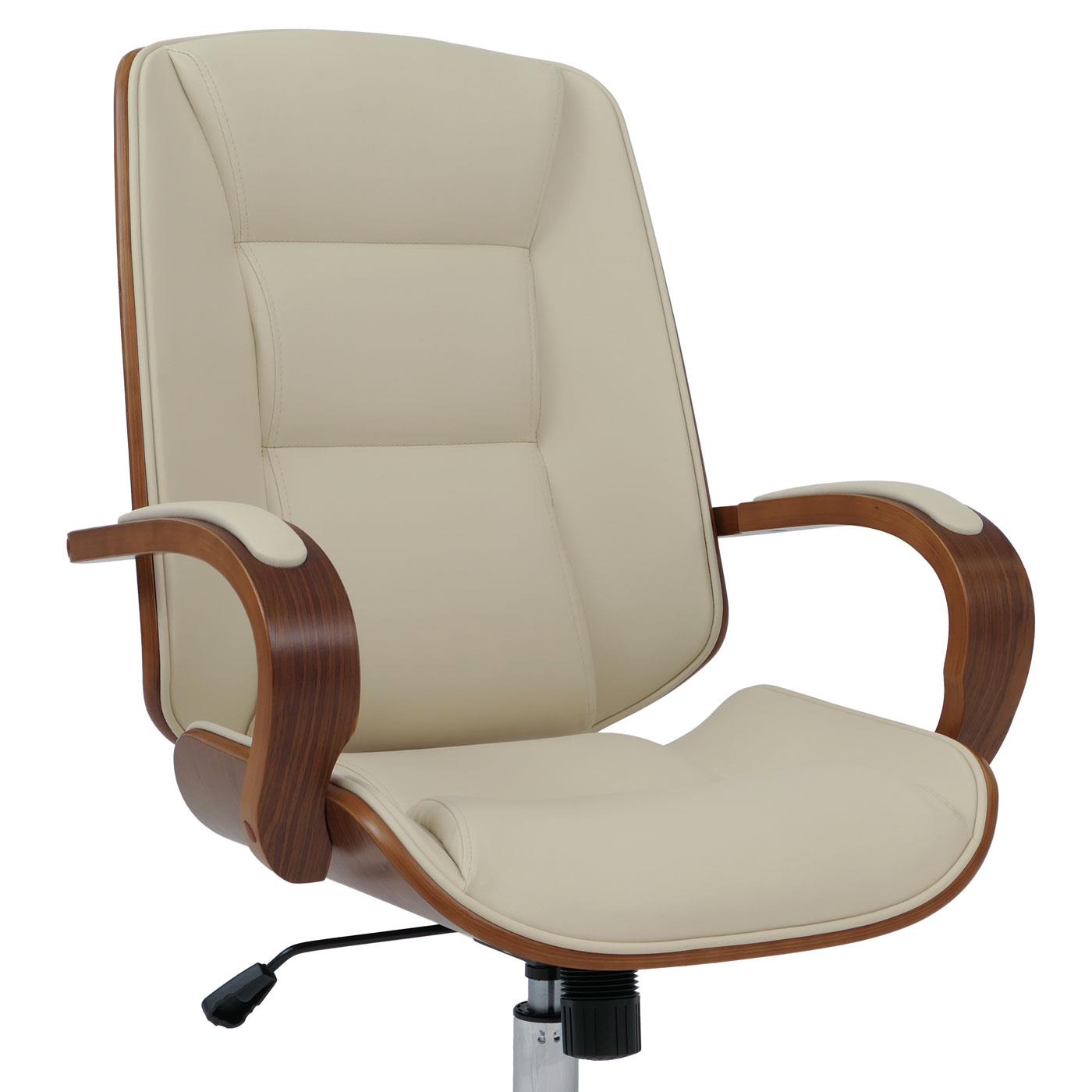Bureaustoel CLARIN, Dikke Vulling, Elegant Ontwerp met Hout en Lederen Bekleding in de kleur Beige