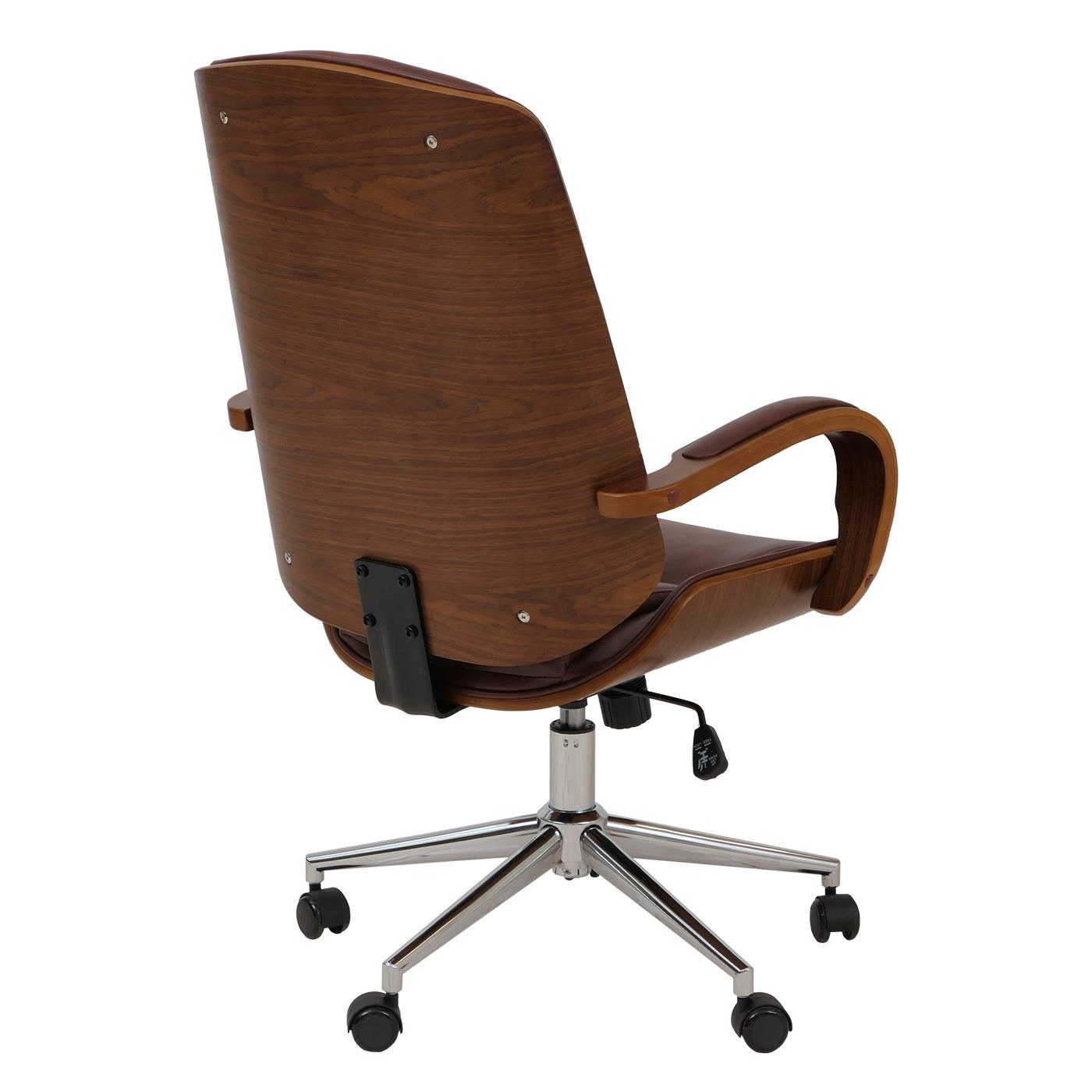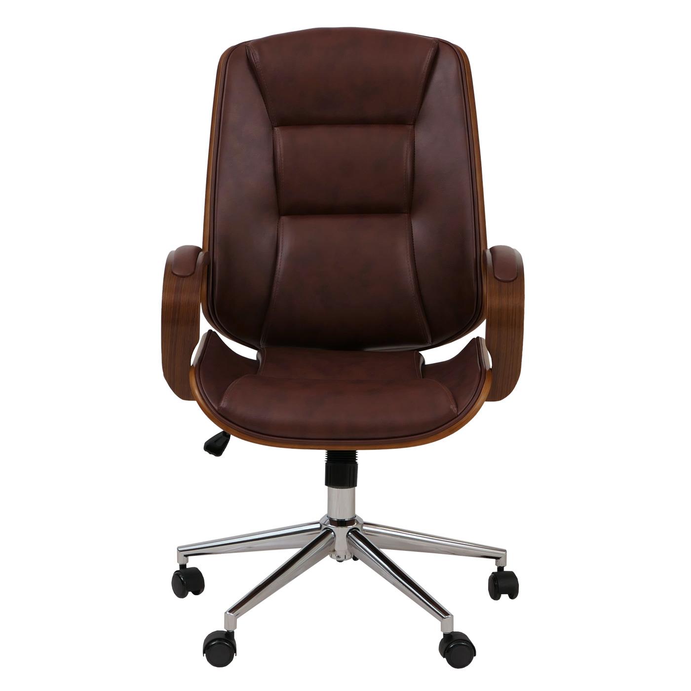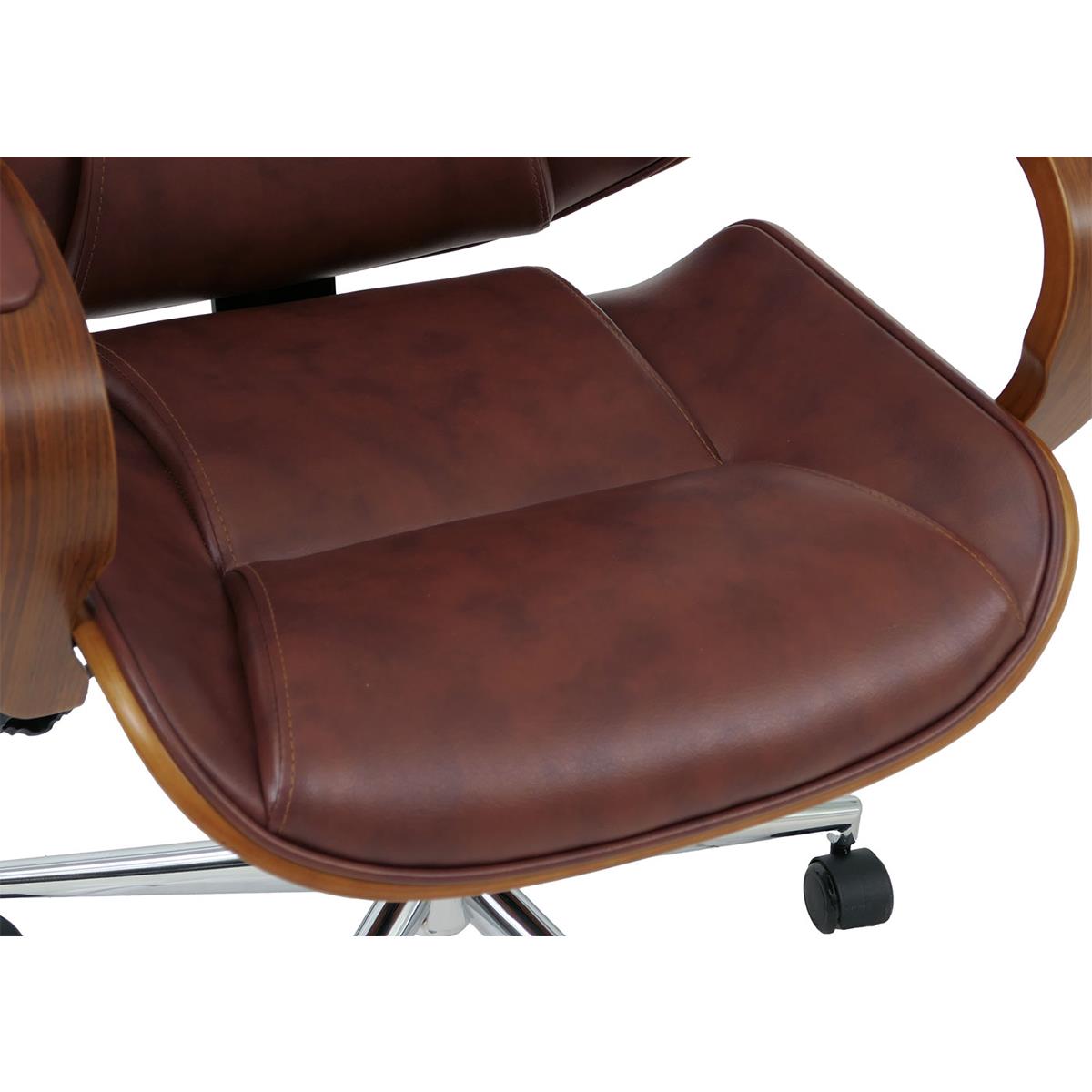 Bureaustoel CLARIN, Dikke Vulling, Elegant Ontwerp met Hout en Lederen Bekleding in de kleur Bruin