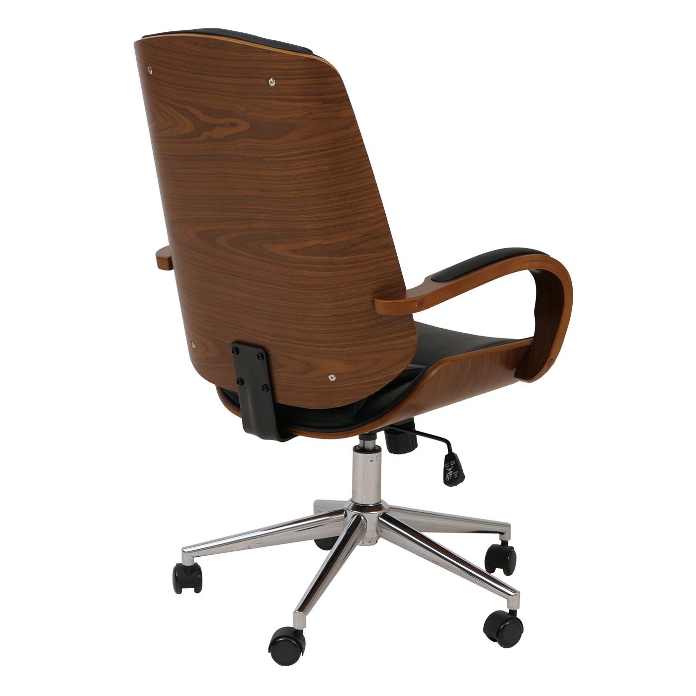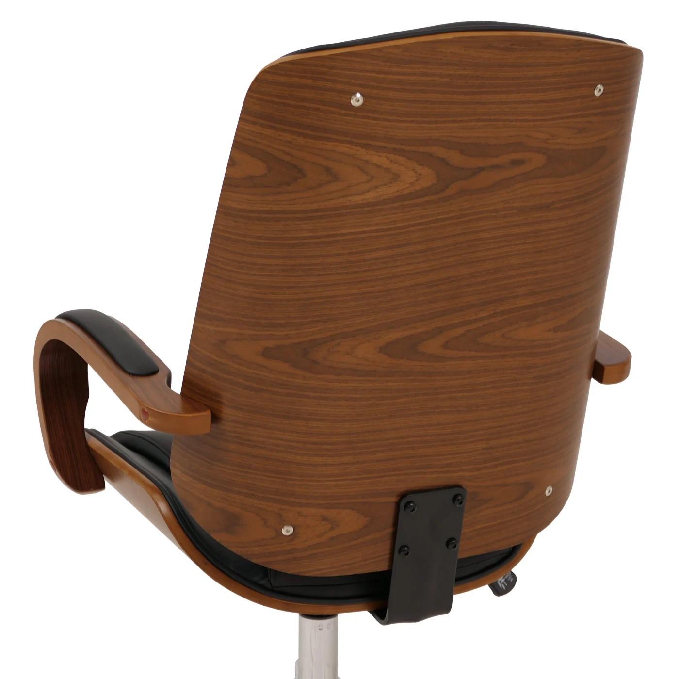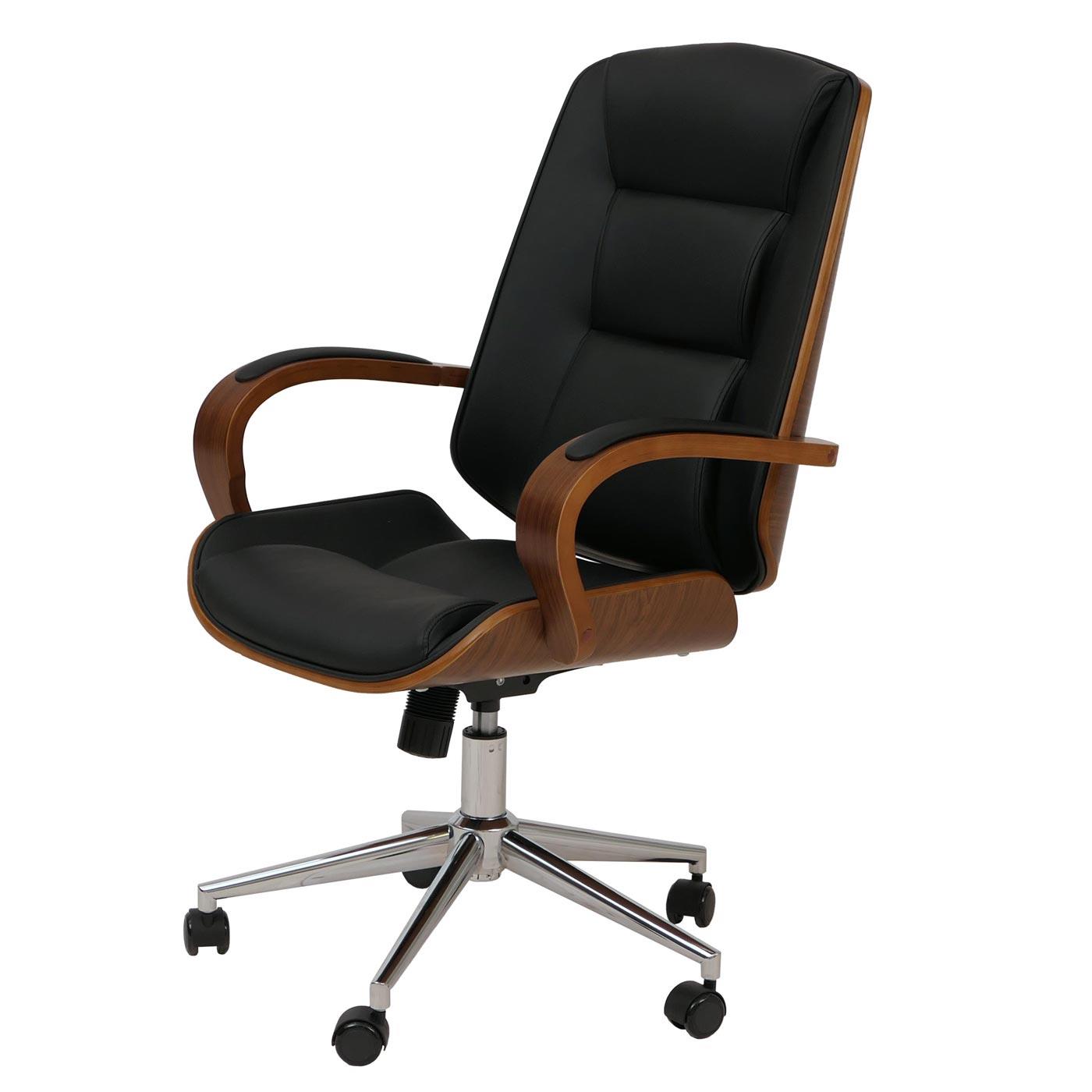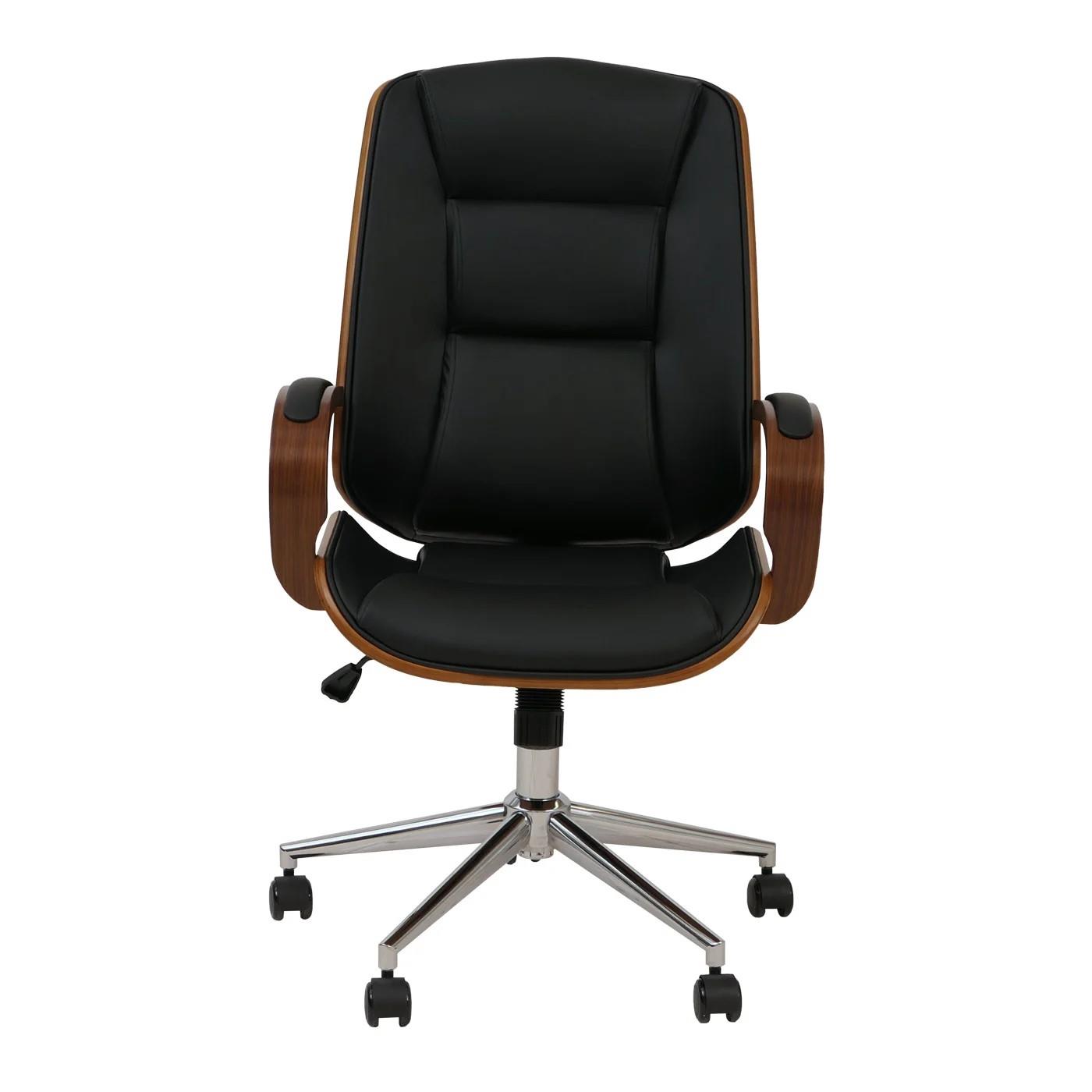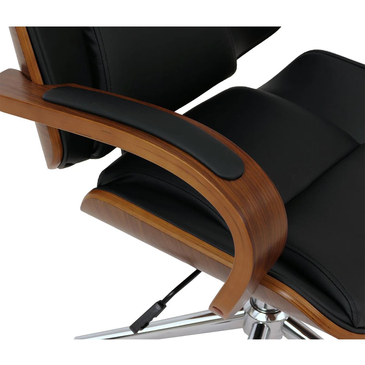 Bureaustoel CLARIN, Dikke Vulling, Elegant Ontwerp met Hout en Lederen Bekleding in de kleur Zwart