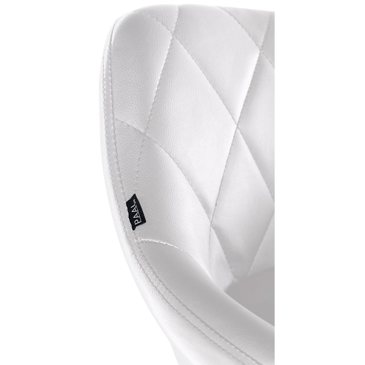 De stoel is bekleed met hoogwaardig synthetisch leder, verkrijgbaar in verschillende kleuren en ideaal materiaal voor intensief gebruik omdat het onderhoudsvriendelijk is. Het frame is gemaakt van metaal, iets dat een pluspunt vormt op het gebied van vormgeving en afwerking. Maximale belasting en een lange levensduur zijn hiermee gegarandeerd.