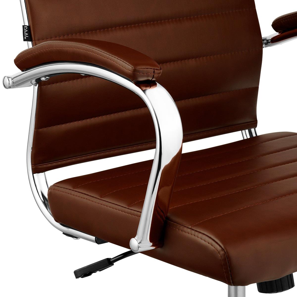 Voor de productie is hoogwaardig materiaal gebruikt, waardoor dit een duurzame en resistente stoel is. Een duidelijk voorbeeld hiervan is het verchroomd metalen onderstel, dat naast een stijlvol tintje, voor maximale stabiliteit zorgt. Hetzelfde geldt voor de designer armleuningen: comfort en elegantie dankzij de inzetstukken van chroom en leer.