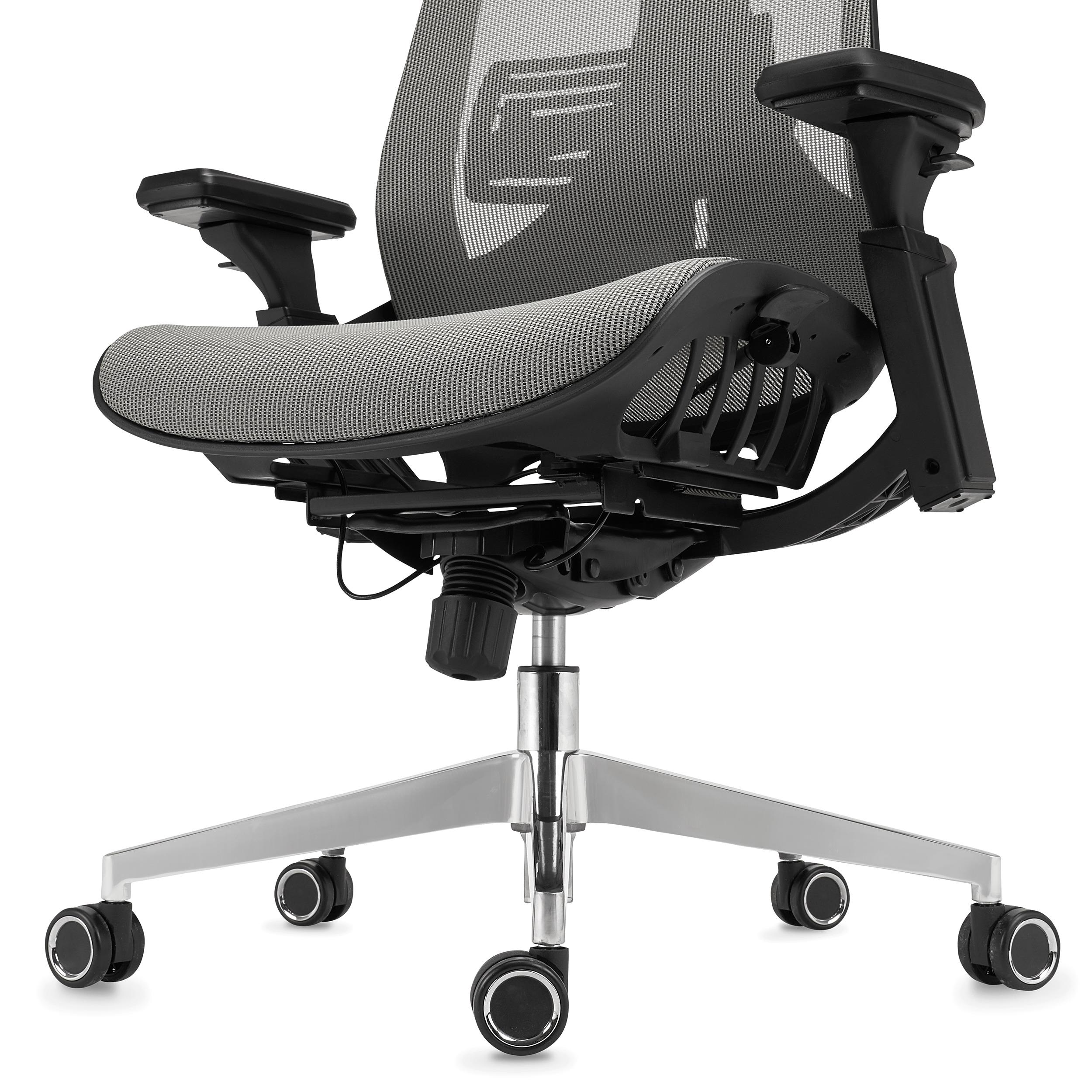 Deze stoel is dan ook geschikt voor langere mensen. Door de ruime afmetingen kunnen lange gebruikers comfortabeler werken en de stoel volledig aanpassen om een juiste werkhouding te behouden. Het is een stoel die opvalt door zijn uitstekende afwerking en productiekwaliteit. Het bewijs hiervan kunt u vinden in het solide onderstel van gepolijst aluminium en zijn designerwielen.