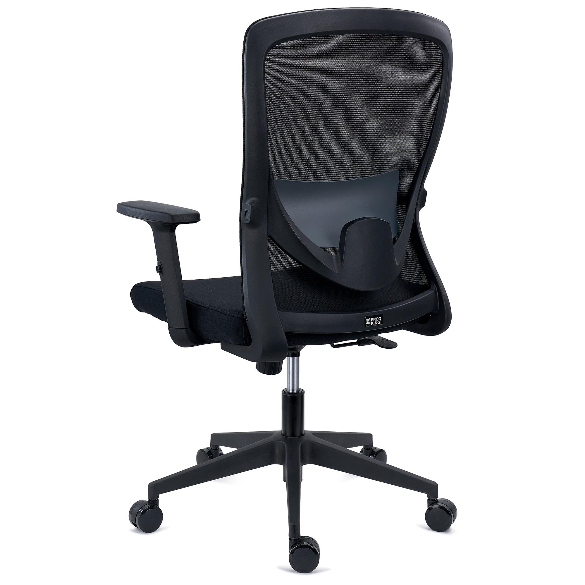De ergonomische rugleuning heeft doordachte vormen die een optimale rugondersteuning mogelijk maken. Daarnaast garandeert de 100% ademende mesh-stoffering een goede ventilatie. De prachtige lendensteun is flexibel en gewatteerd en past zich perfect aan de onderrug aan zodat het comfort en de ondersteuning superieur zijn.