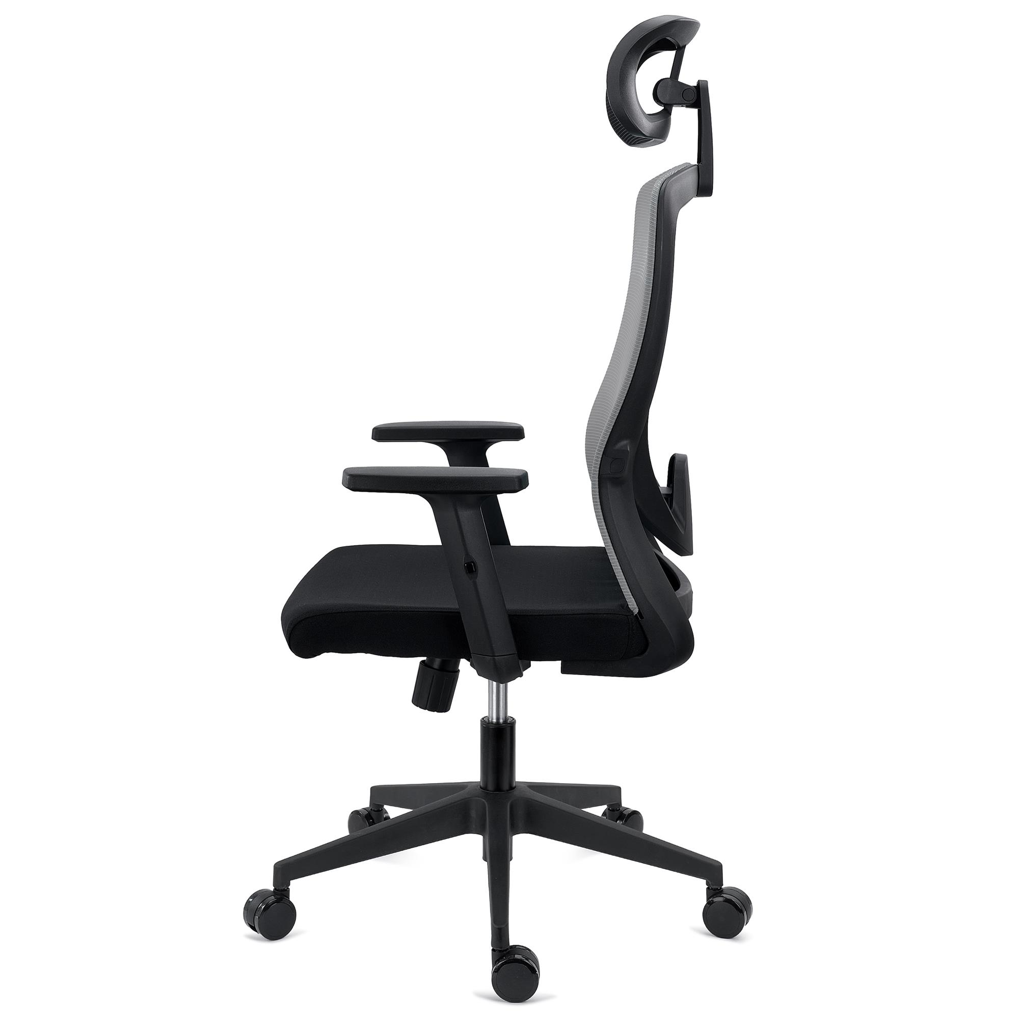 De hoofdsteun is zowel in hoek als in hoogte verstelbaar en is bekleed met ademende mesh. De armleuningen zijn in hoogte verstelbaar en zijn opgevuld met zachte en aangename pads voor meer comfort. Ze zijn makkelijk in hoogte te verstellen dankzij de zijknoppen.