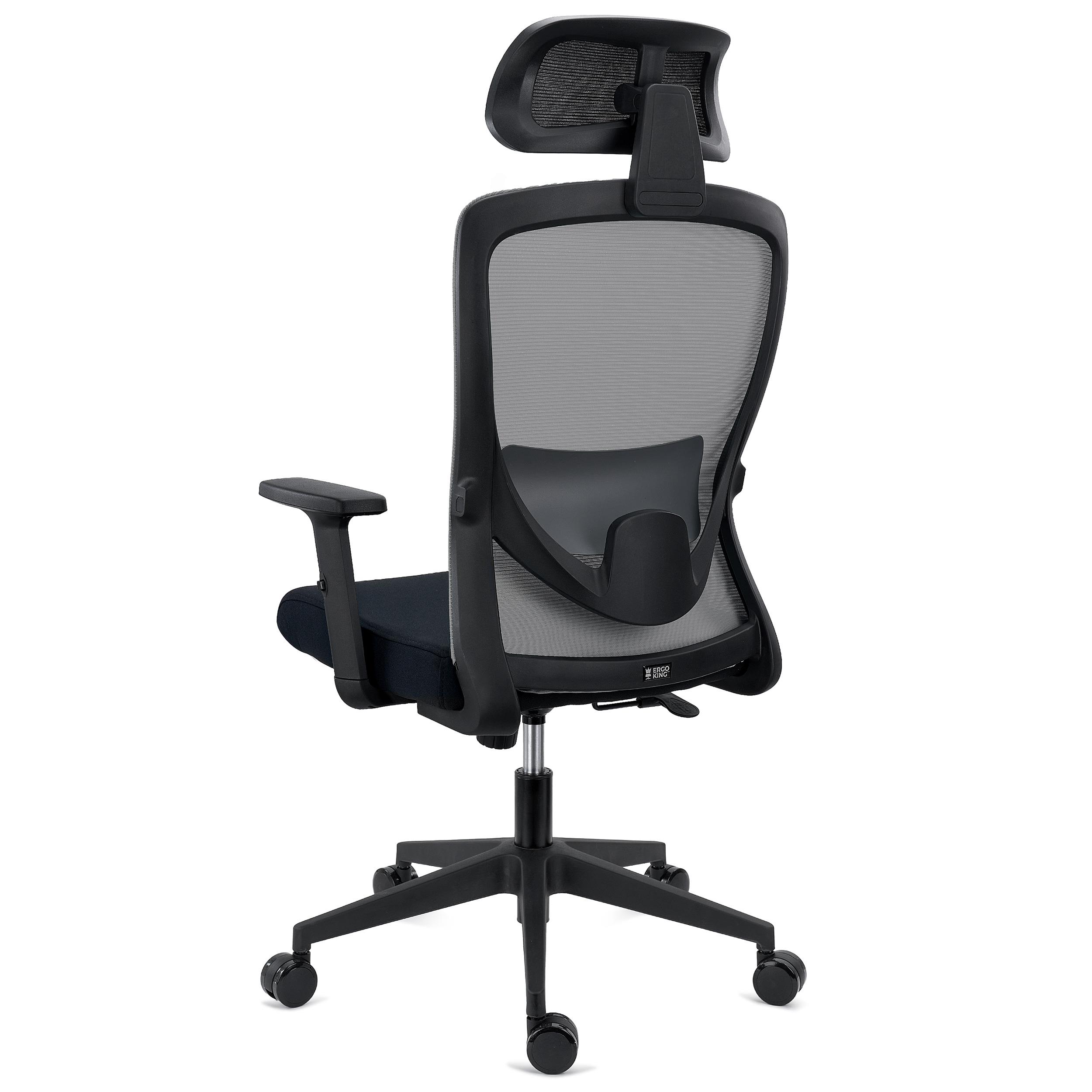 De ergonomische rugleuning heeft doordachte vormen die een optimale rugondersteuning mogelijk maken. Daarnaast garandeert de 100% ademende mesh-stoffering een goede ventilatie. De prachtige lendensteun is flexibel en gewatteerd en past zich perfect aan de onderrug aan zodat het comfort en de ondersteuning superieur zijn.