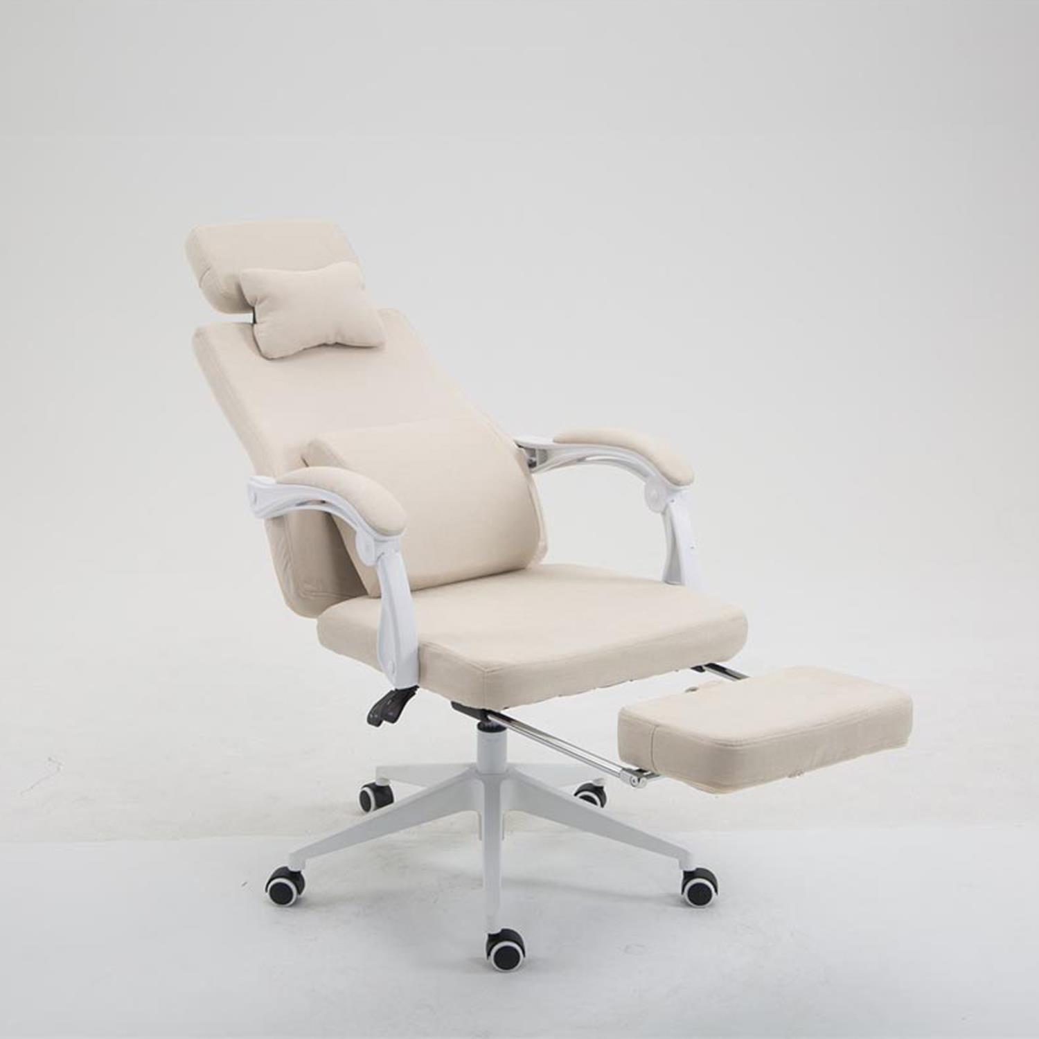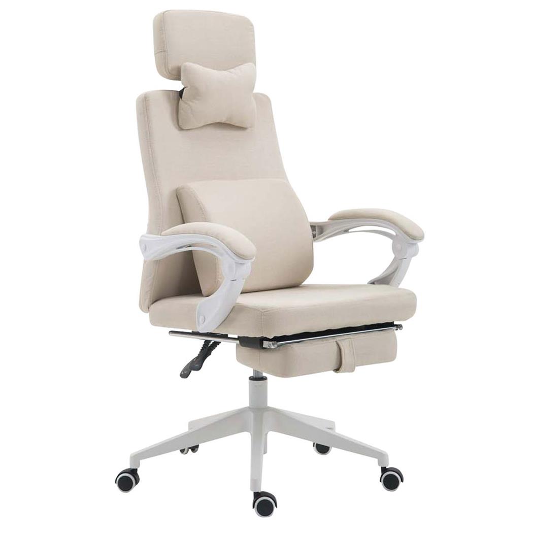 Directiestoel ADRIANO, Uitschuifbare Voetsteun, Lumbaal- en Cervicaalkussens, in Beige Stof