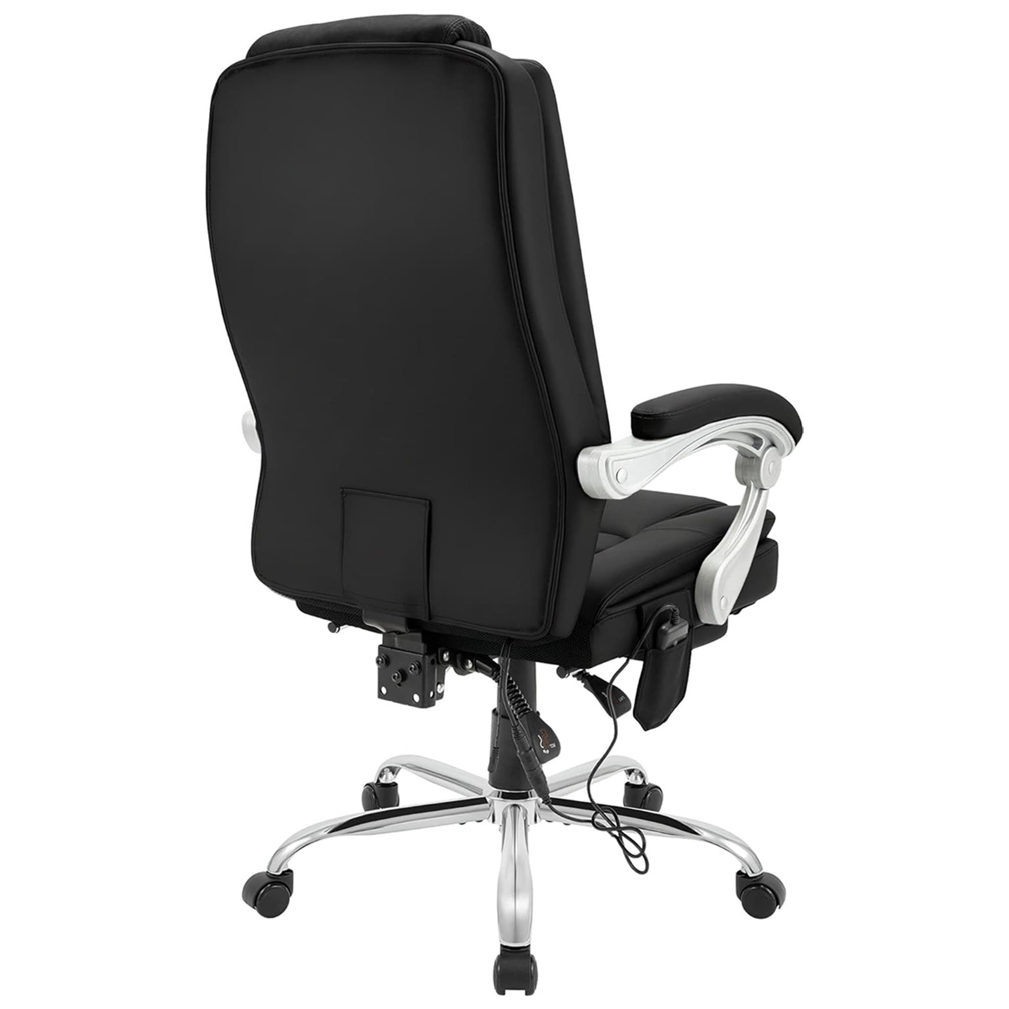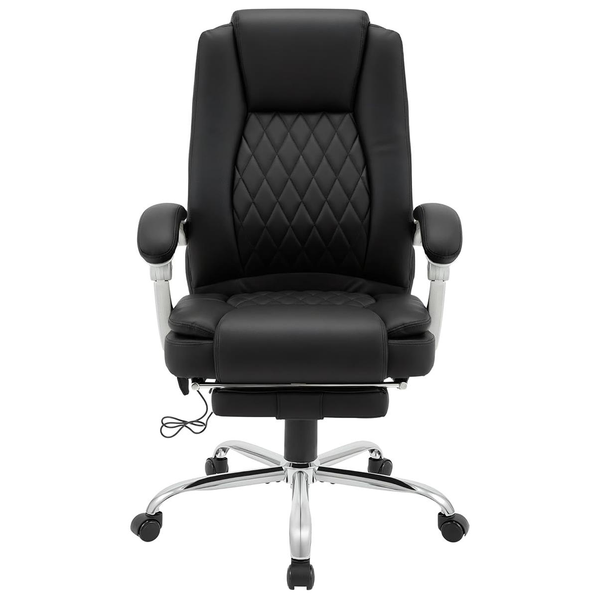 Directiestoel CABUYA, Massage- en Warmtefunctie, Uitschuifbare Voetensteun, in Zwart Leder