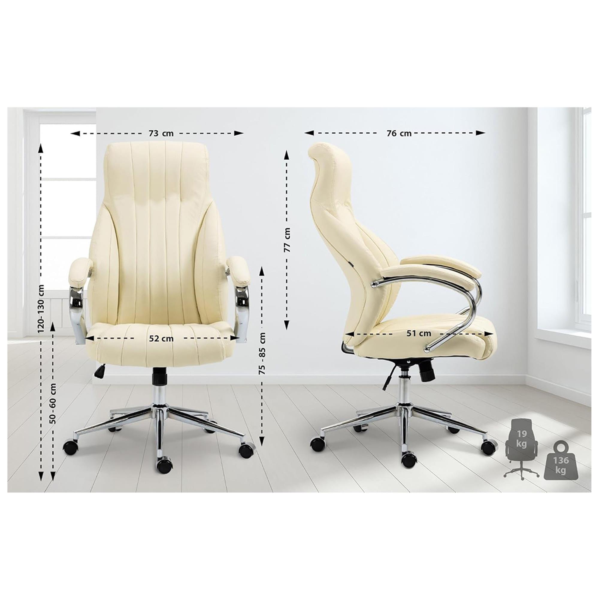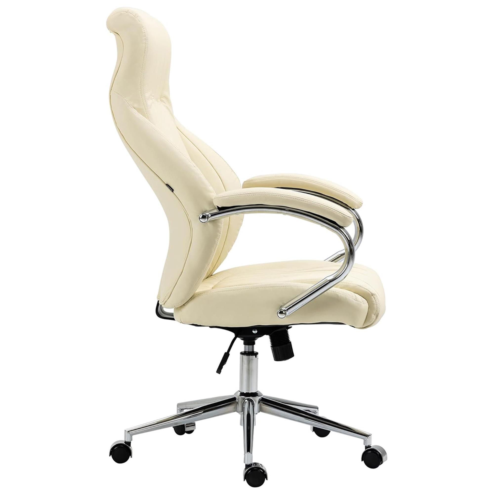 Directiestoel DAHLIA, Dikke Vulling, Metalen Onderstel, Bekleed met Beige Echt Leder