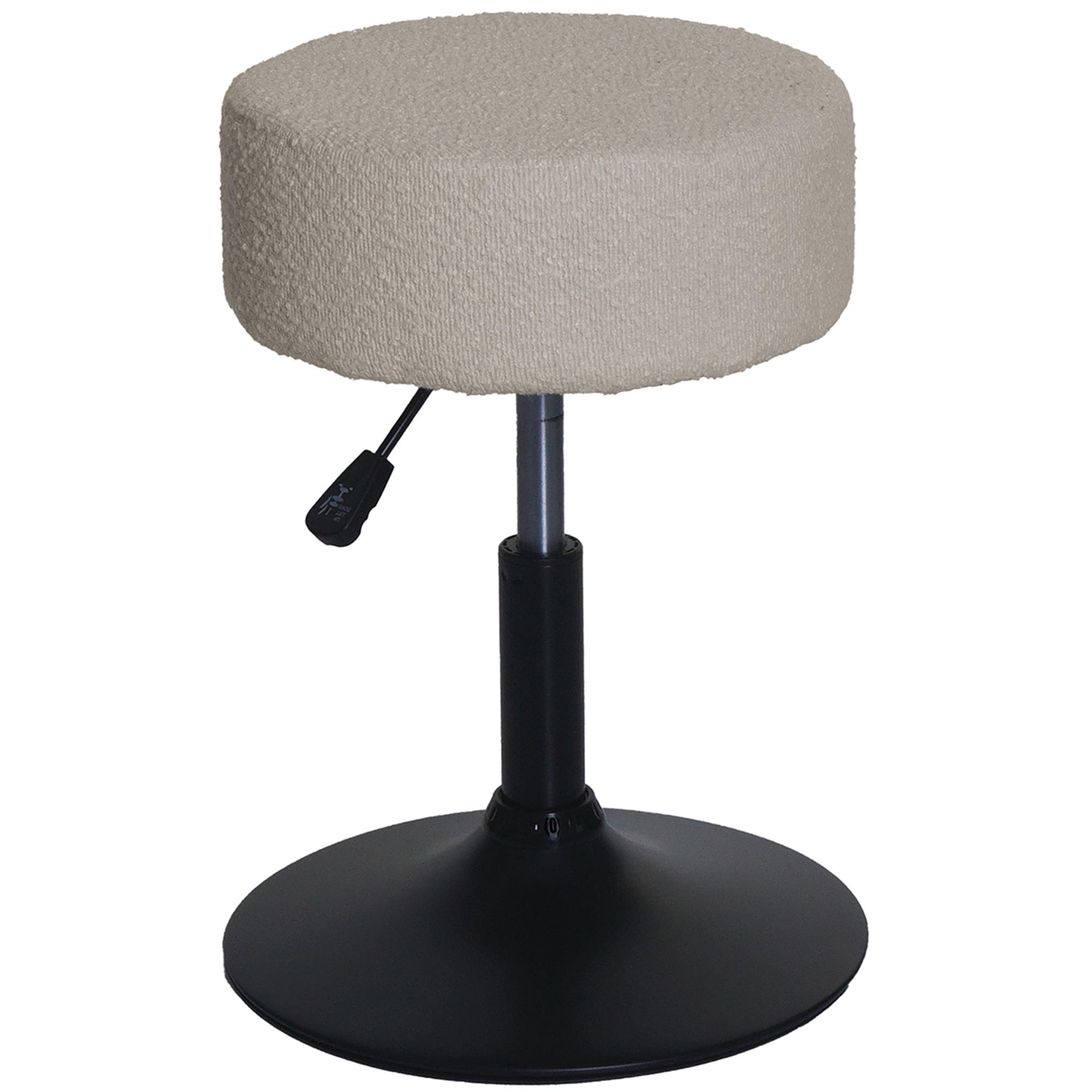 Het onderstel is een ronde metalen voet en de ronde zitting is bekleed met hoogwaardig en zacht aanvoelende stof. Alle materialen zijn gemakkelijk te onderhouden en schoon te maken.