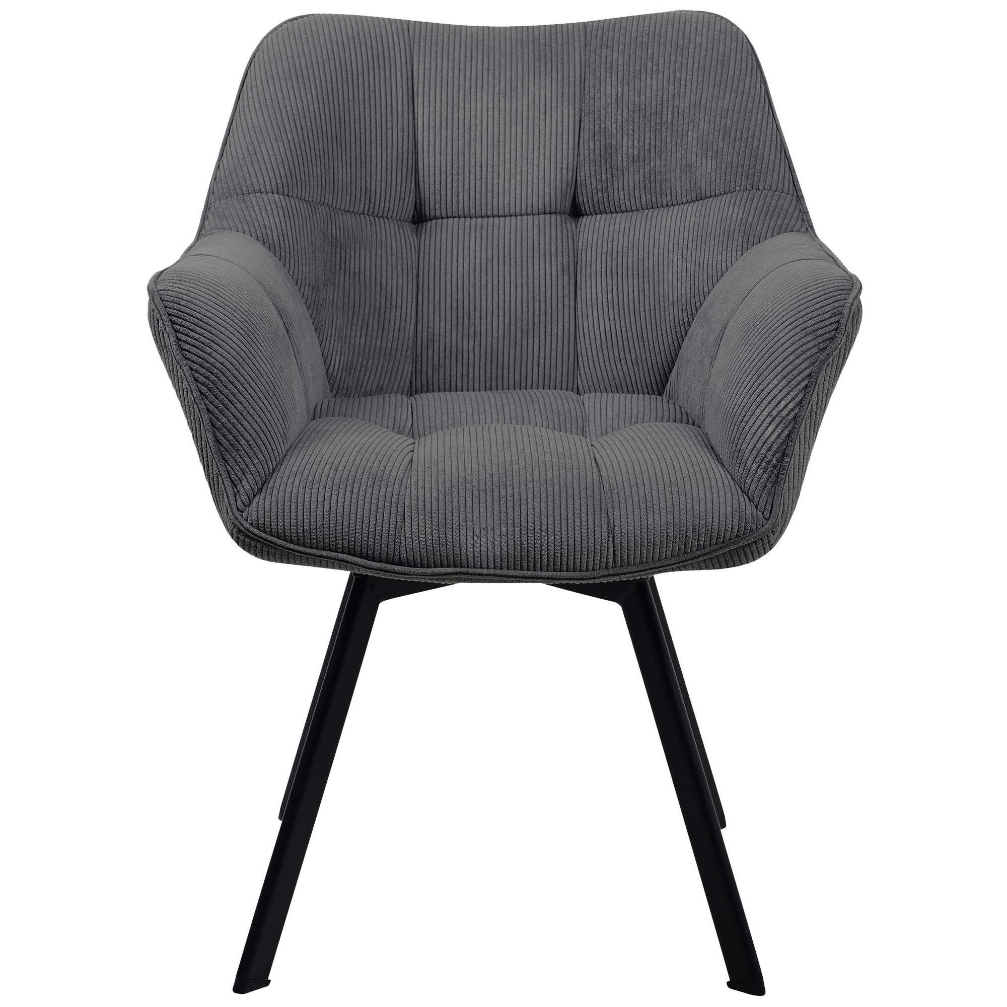 Eetkamerstoel TAMMY Dik Gewatteerde Zitting, Zwarte Metalen Poten, Grijs Corduroy