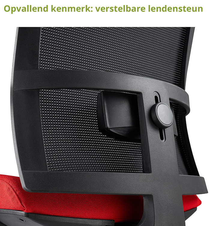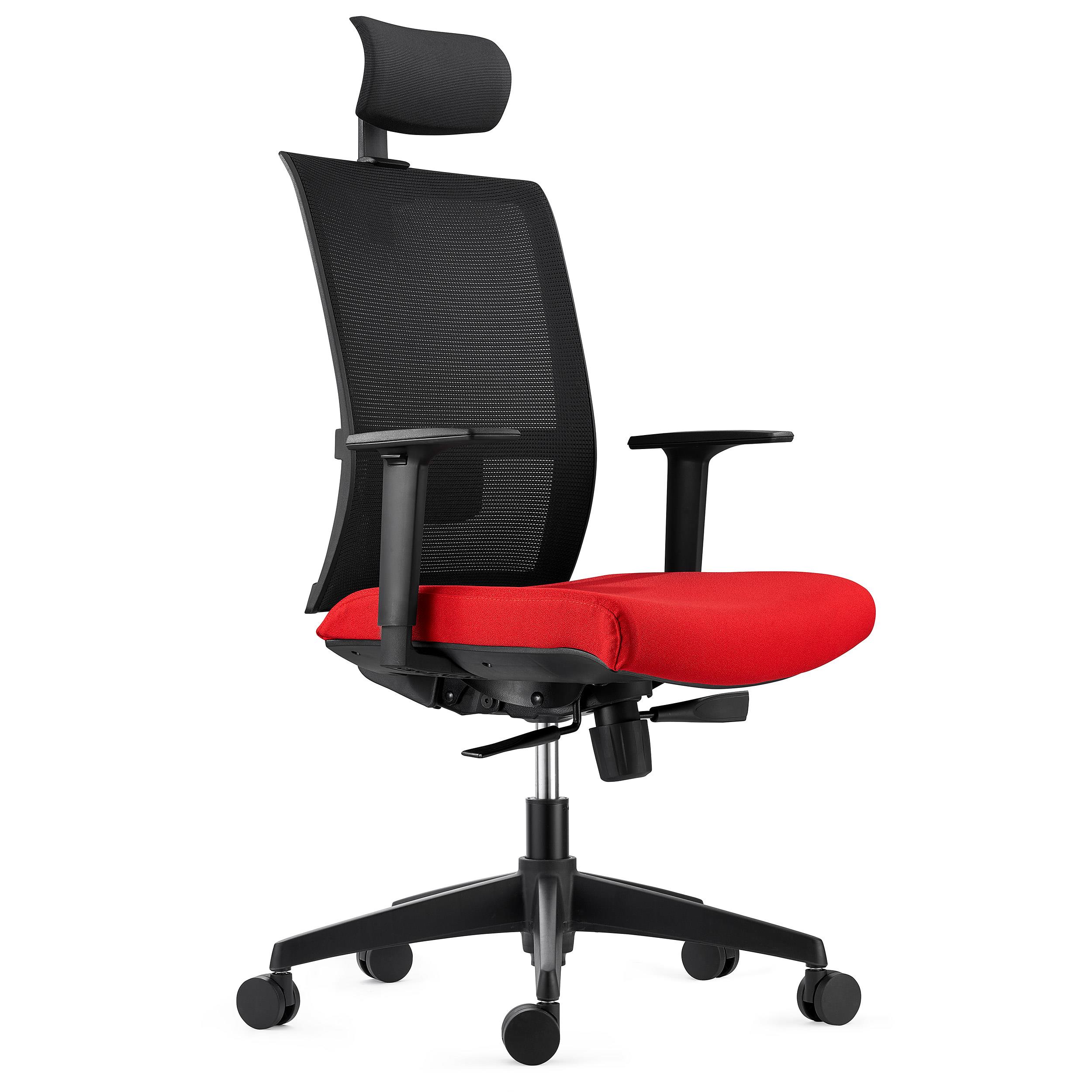 Ergonomische Bureaustoel AXEL, Met Hoofdsteun, Lendensteun, in Mesh en Stof, Kleur Rood