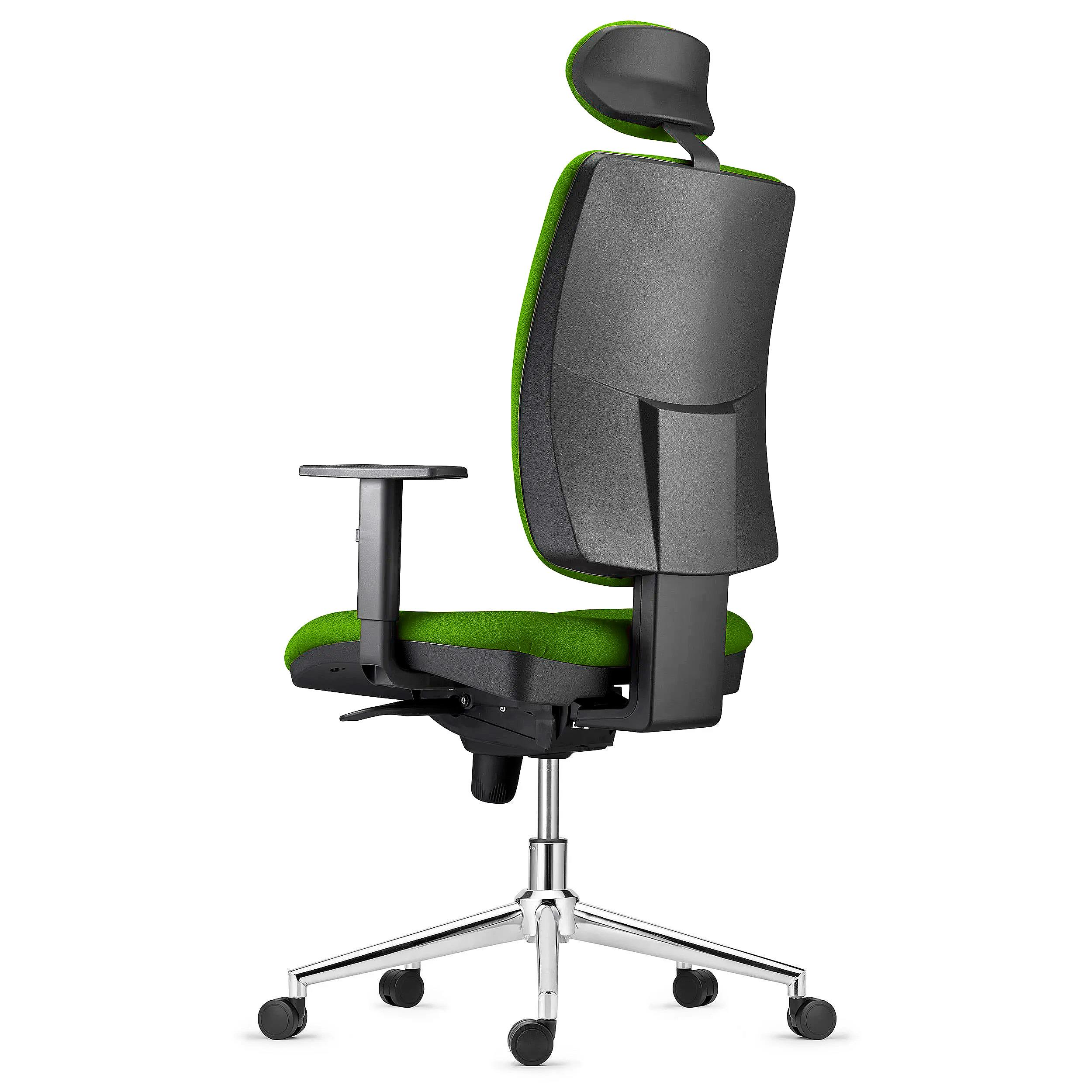 Ergonomische Bureaustoel PIERO, Met Metalen Onderstel, In Groene Stof, Hoofdsteun En Verstelbare Armleuningen