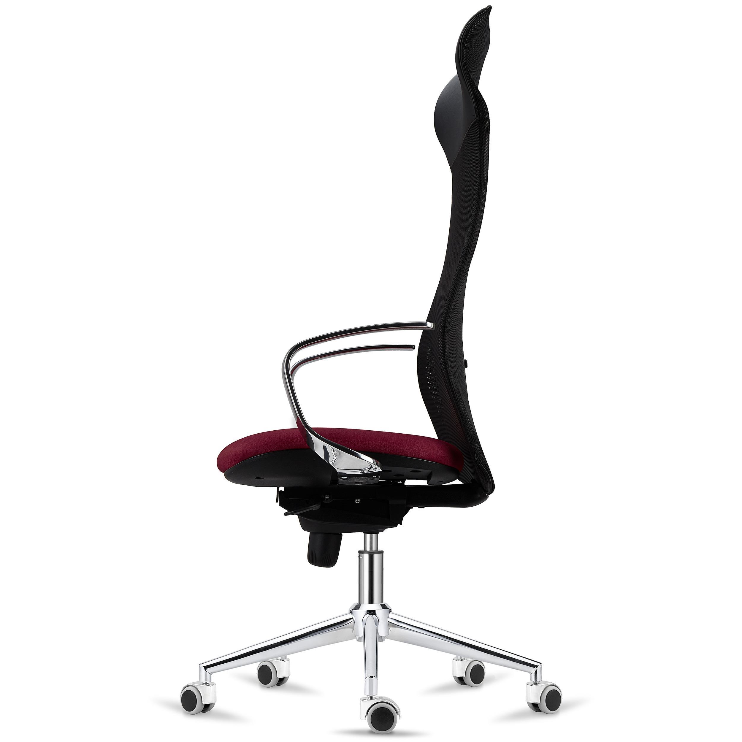 Hij is bijzonder comfortabel dankzij zijn bestudeerde ergonomische ontwerp. De gebruiker neemt hierdoor te allen tijde een gezonde houding aan. De dikke, dichte vulling van de zitting (30 kg / m3) en de hoge rugleuning met geïntegreerde hoofdsteun en in hoogte verstelbare lendensteun dragen verder bij aan het comfort. Bovendien bieden de armleuningen van verchroomd staal een ideaal steunpunt voor de armen, en geven daarnaast ook een interessante esthetische toets.