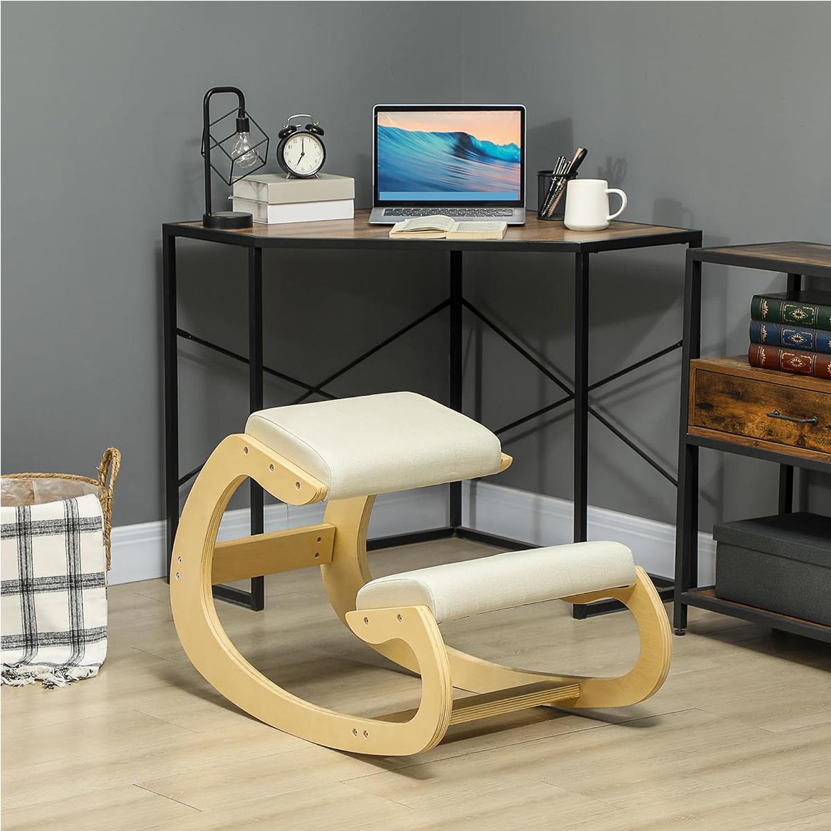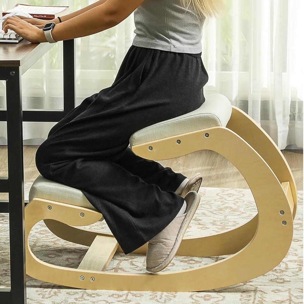 Dankzij de gebogen houten basis schommelt deze knielstoel zachtjes en natuurlijk, waardoor u langer geconcentreerd en productief kunt blijven.