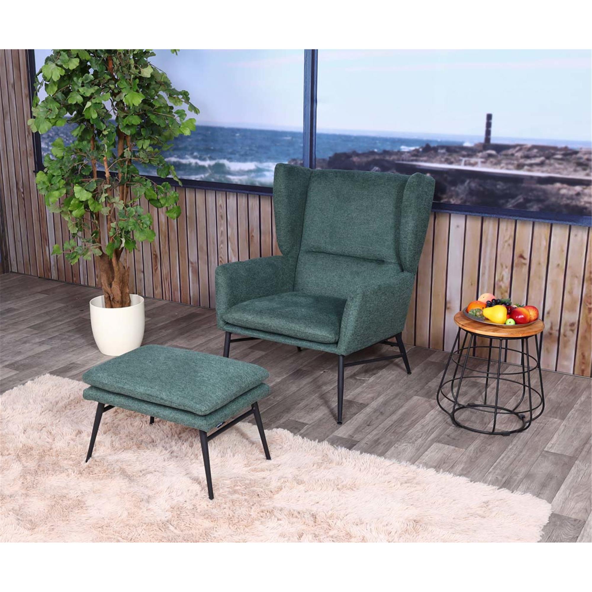 Fauteuil CROFT, Exclusief Comfortabel Ontwerp, Hoge Rugleuning Bekleed met Groene Stof