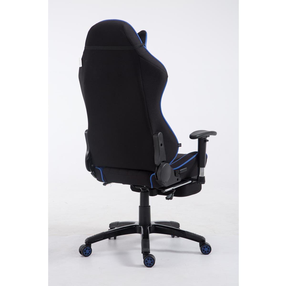 Gamingstoel TURBO STOF, met Voetsteun, Verstelbare Rugleuning, Lumbaal- en Cervicaalkussen, in Zwart/Blauw