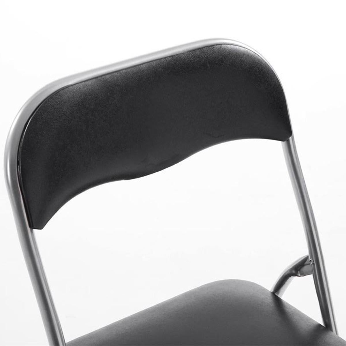 Inklapbare Stoel VINSON, Grijze Metalen Structuur, Lederen Bekleding in het Zwart