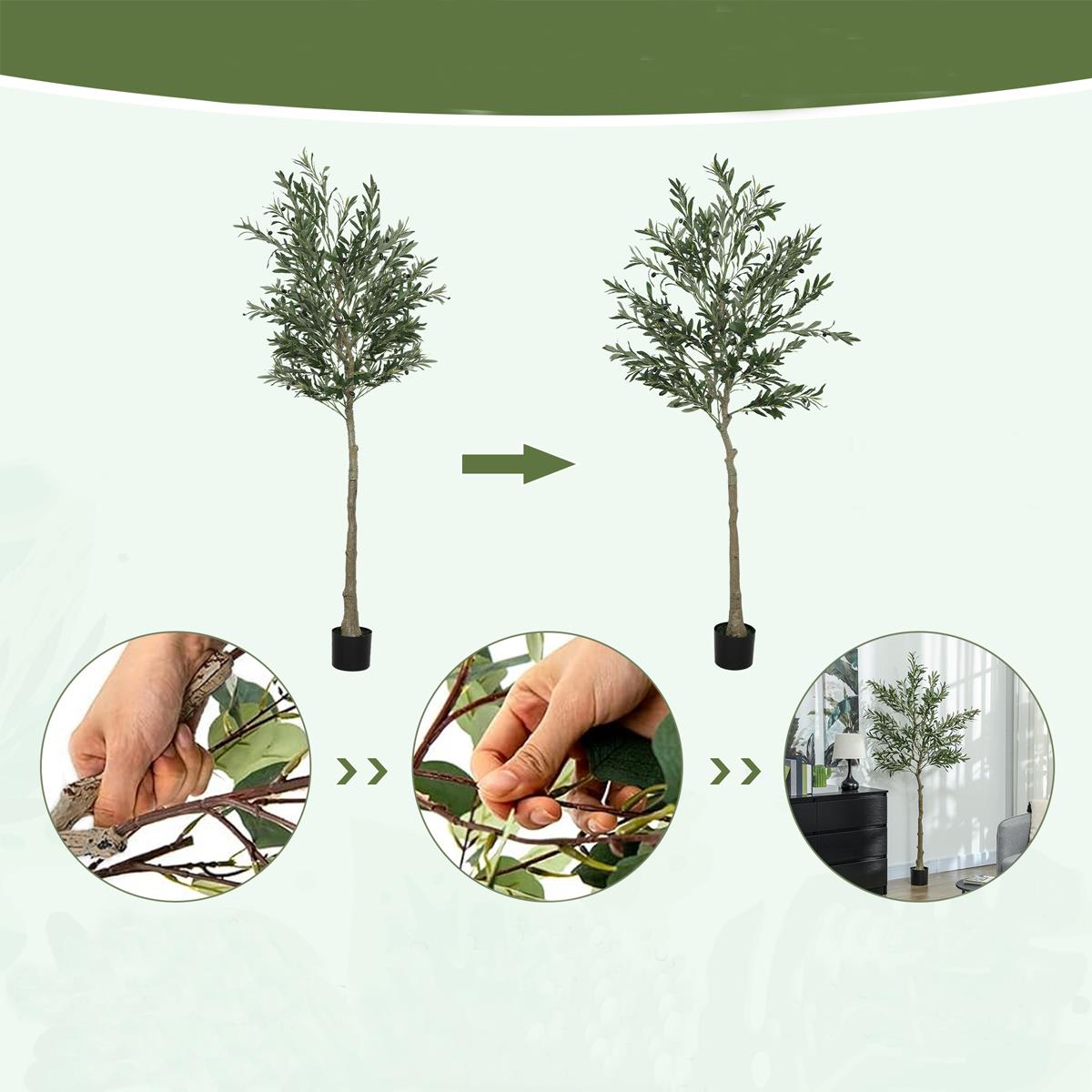 Kantoorplant CASIA,180 cm Hoge Olijfboom, met Bladeren en Olijven, Groen