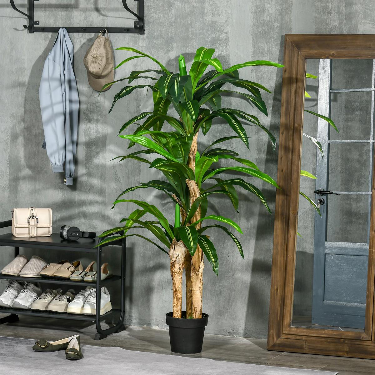 De plant heeft een ideale hoogte van 160 cm en is voorzien van meerdere stammen met 66 groene bladeren, wat zorgt voor een zeer natuurlijke uitstraling.