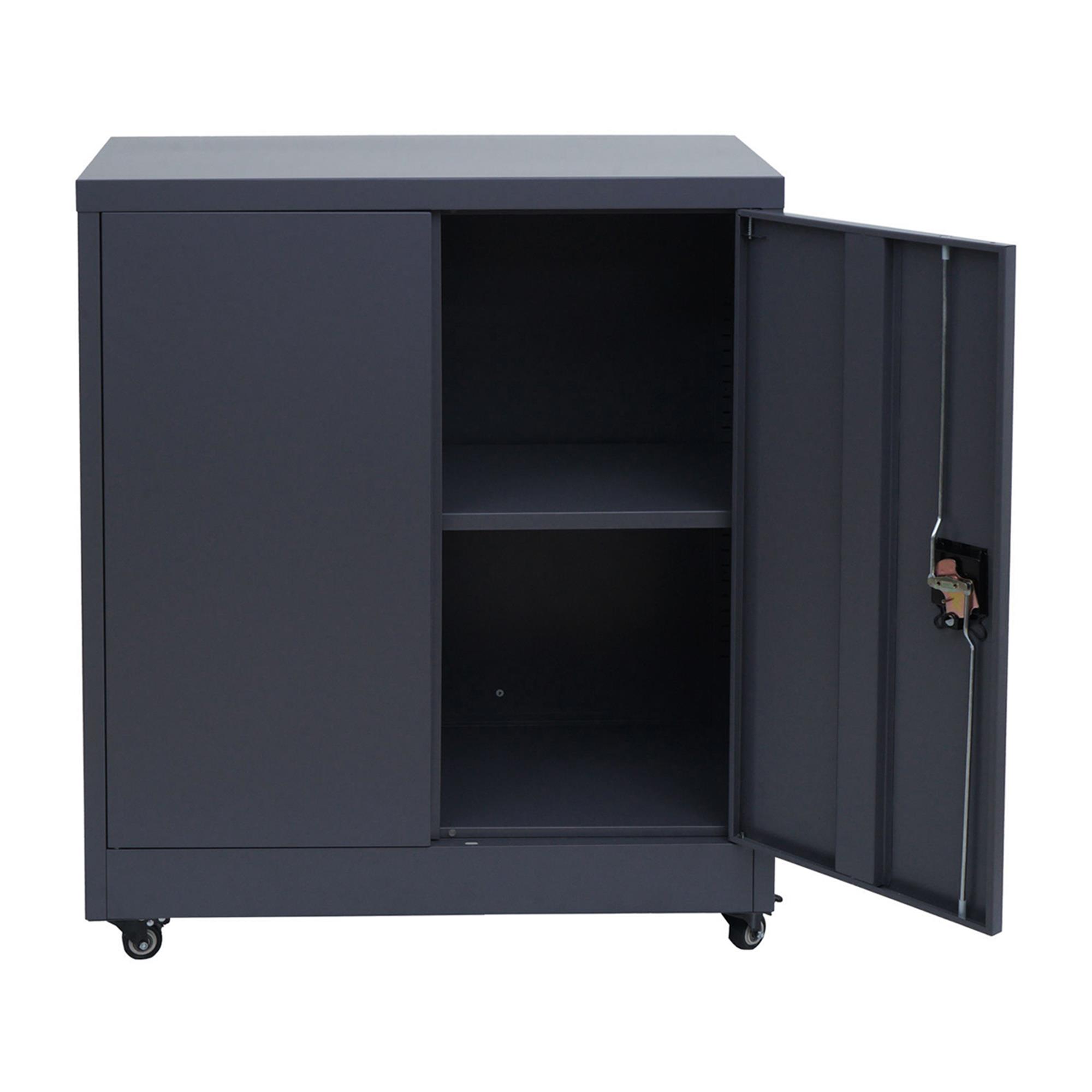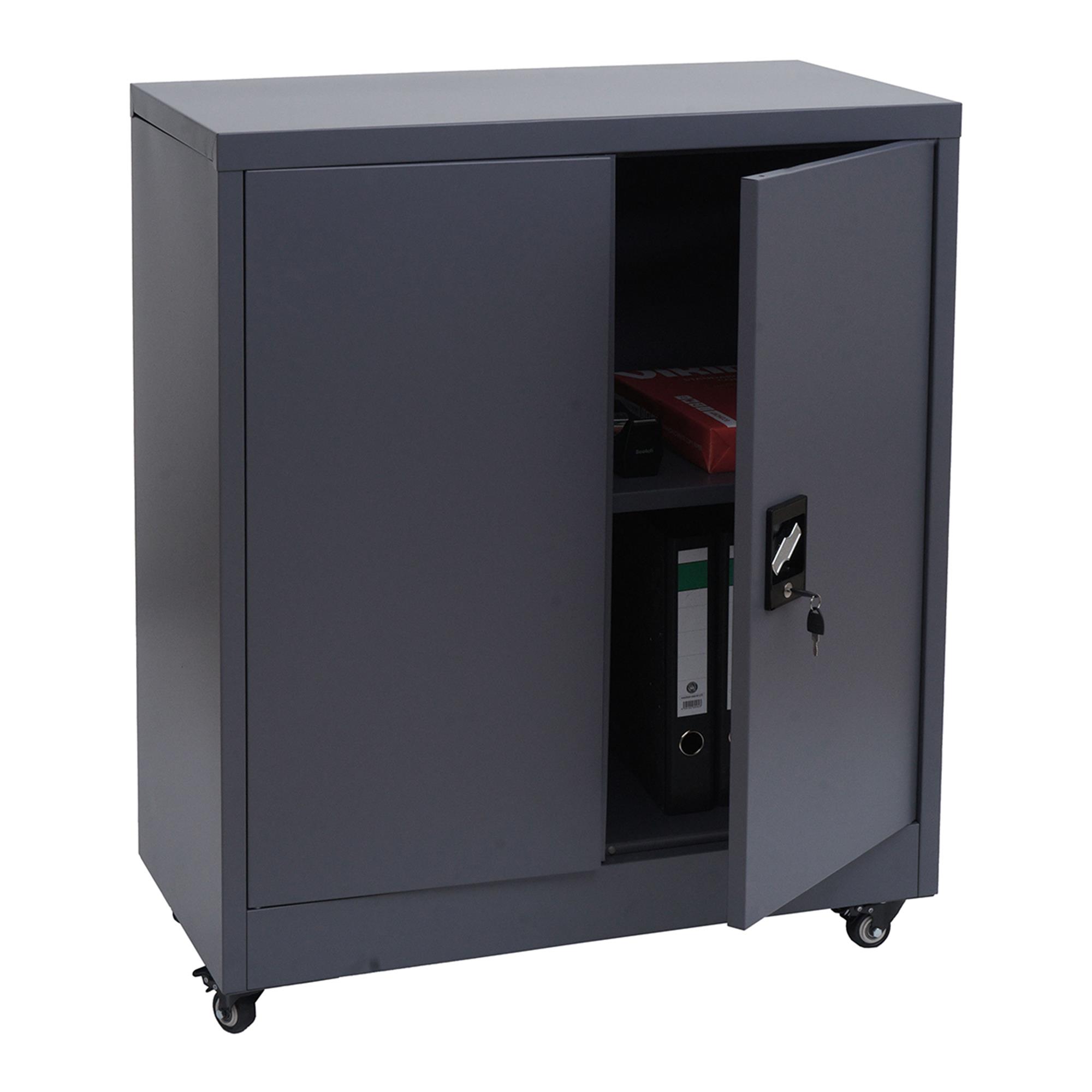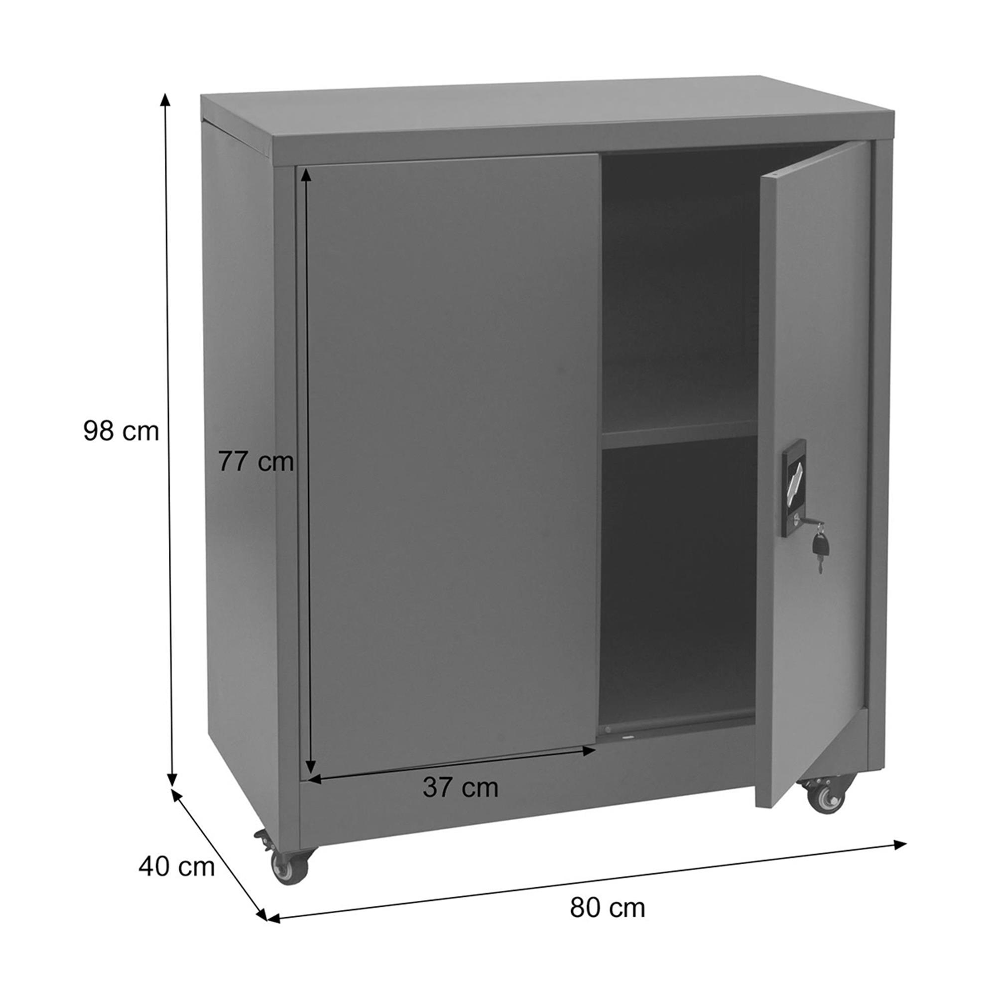 Metalen Kast BRENTON 2 Deuren, Vergrendelbare Wieltjes, 98x80x40cm, in Staal, Donkergrijze Kleur
