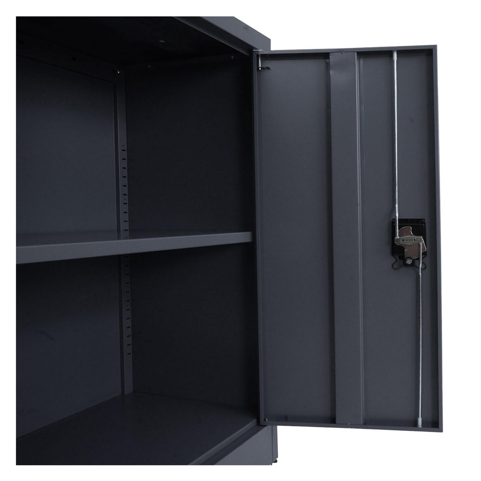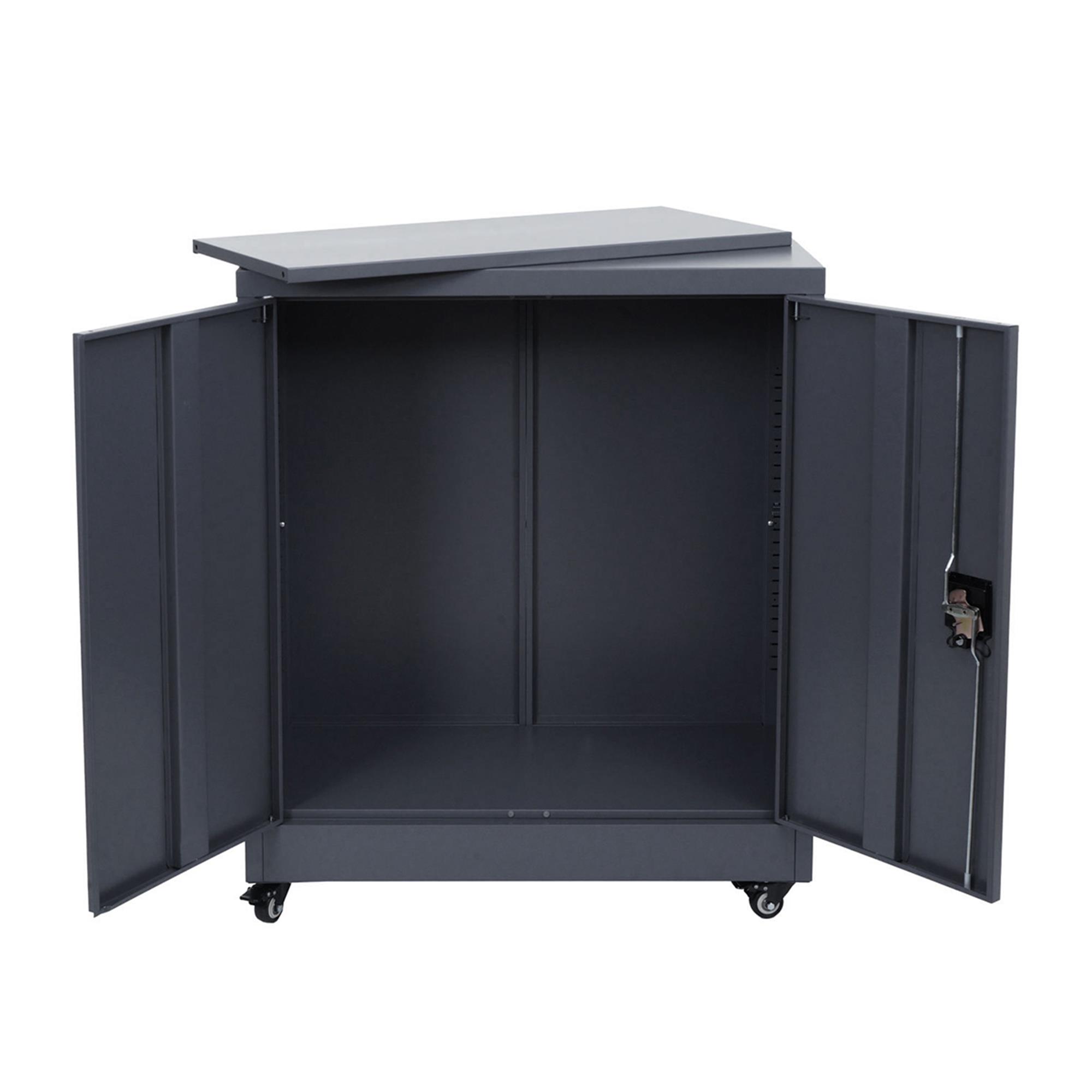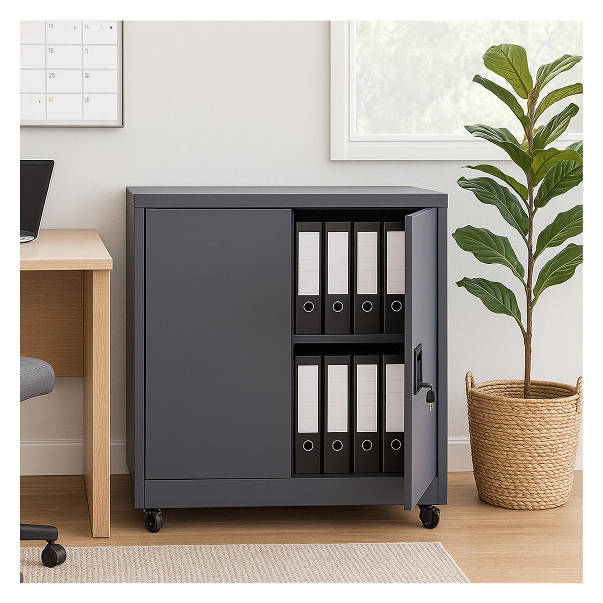 Metalen Kast BRENTON 2 Deuren, Vergrendelbare Wieltjes, 98x80x40cm, in Staal, Donkergrijze Kleur