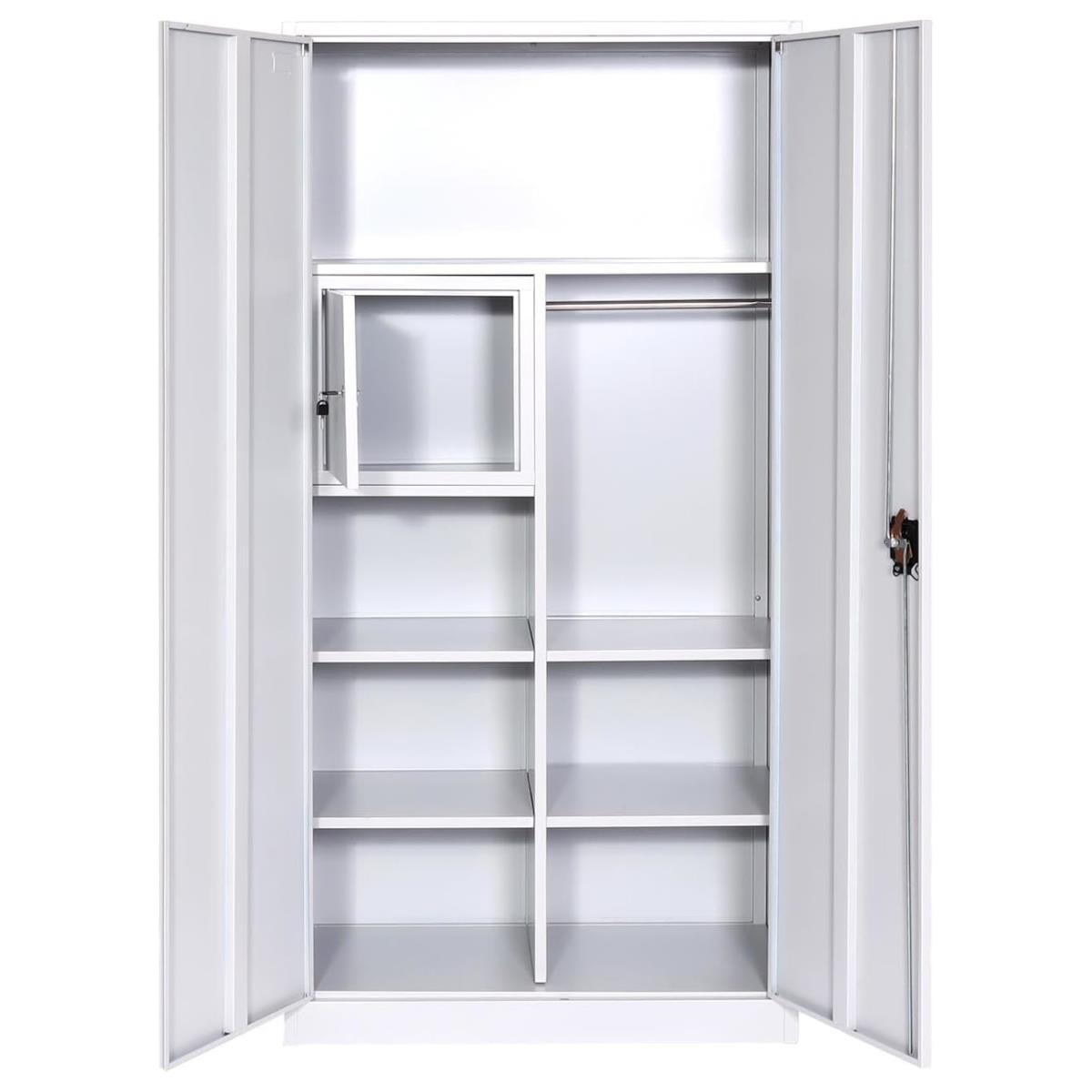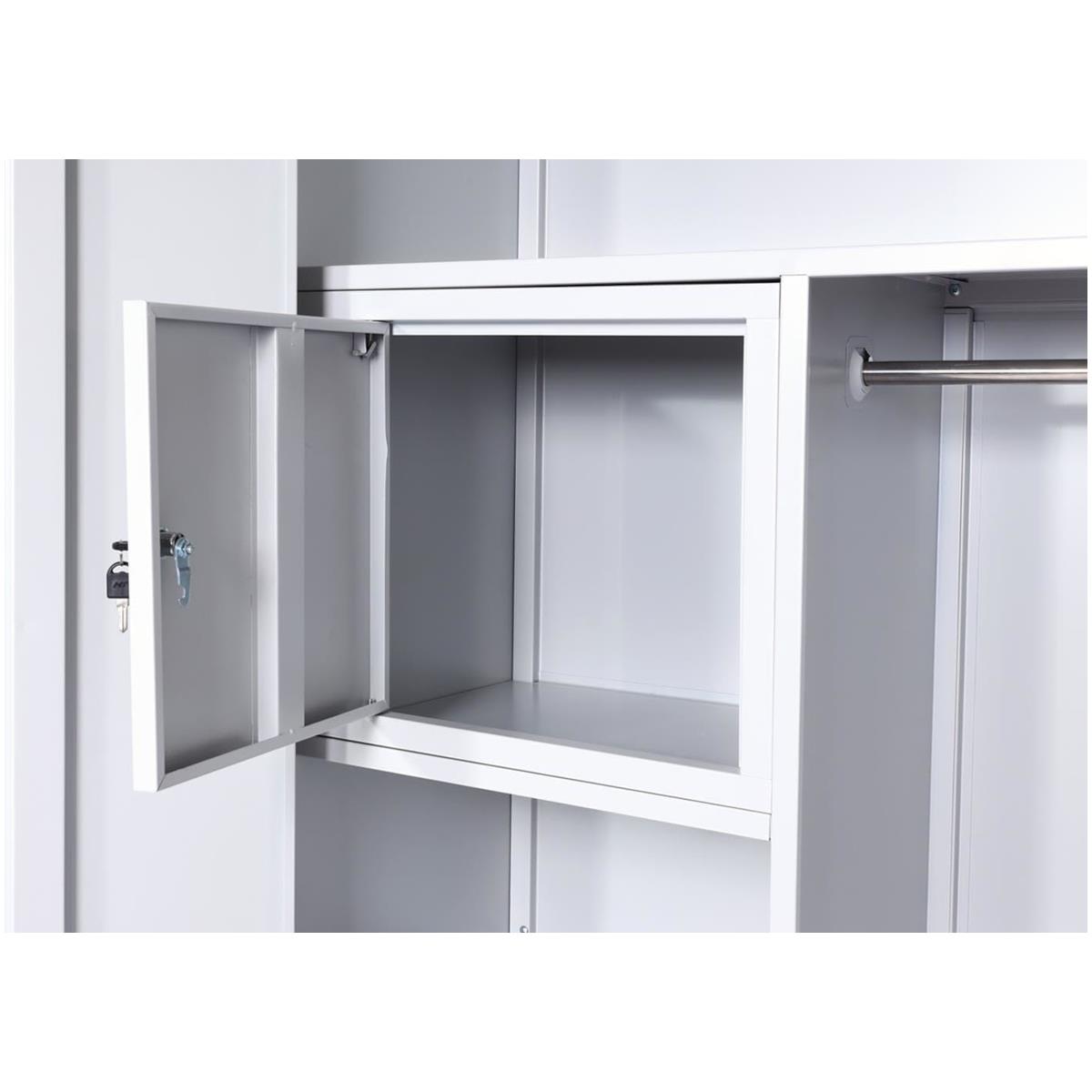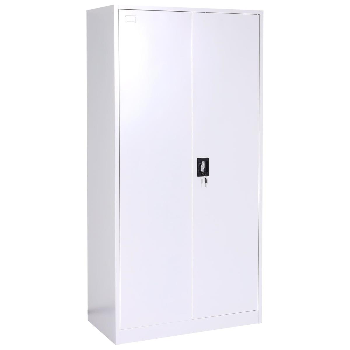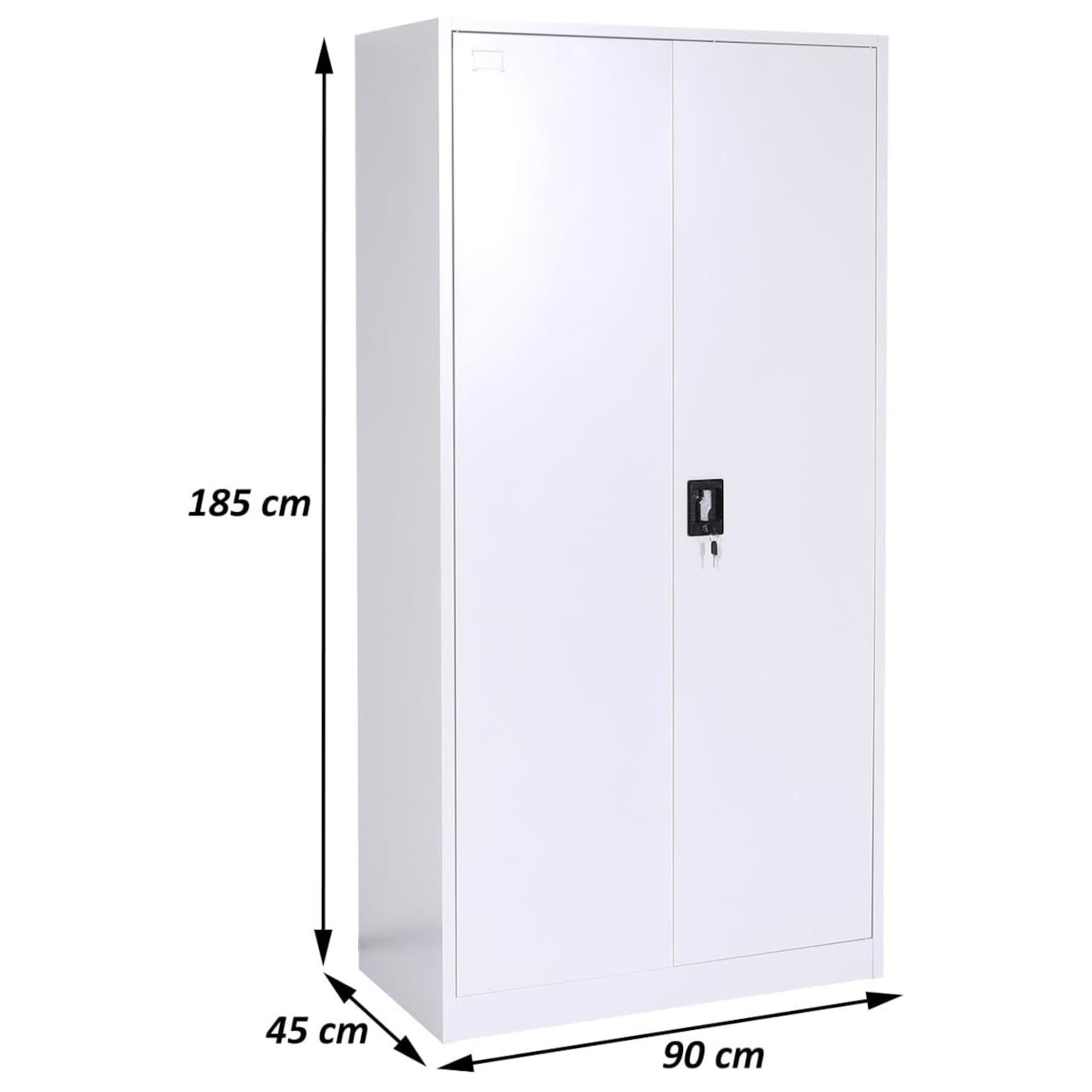 Metalen Kast ISABA, 2 Deuren met Opbergvak met Sleutel, 185x90x45cm, in Staal, Kleur Wit