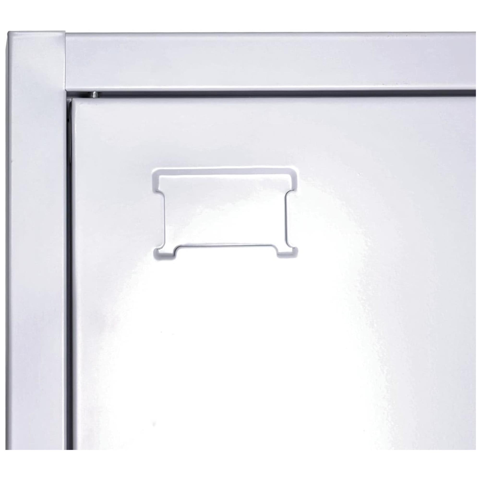 De deur heeft een slot dat afsluitbaar is met een sleutel om de inhoud veilig te beschermen. Bovendien is er ook een praktische labelhouder om de eigenaar of het aanwezige materiaal onmiddelijk te identificieren.