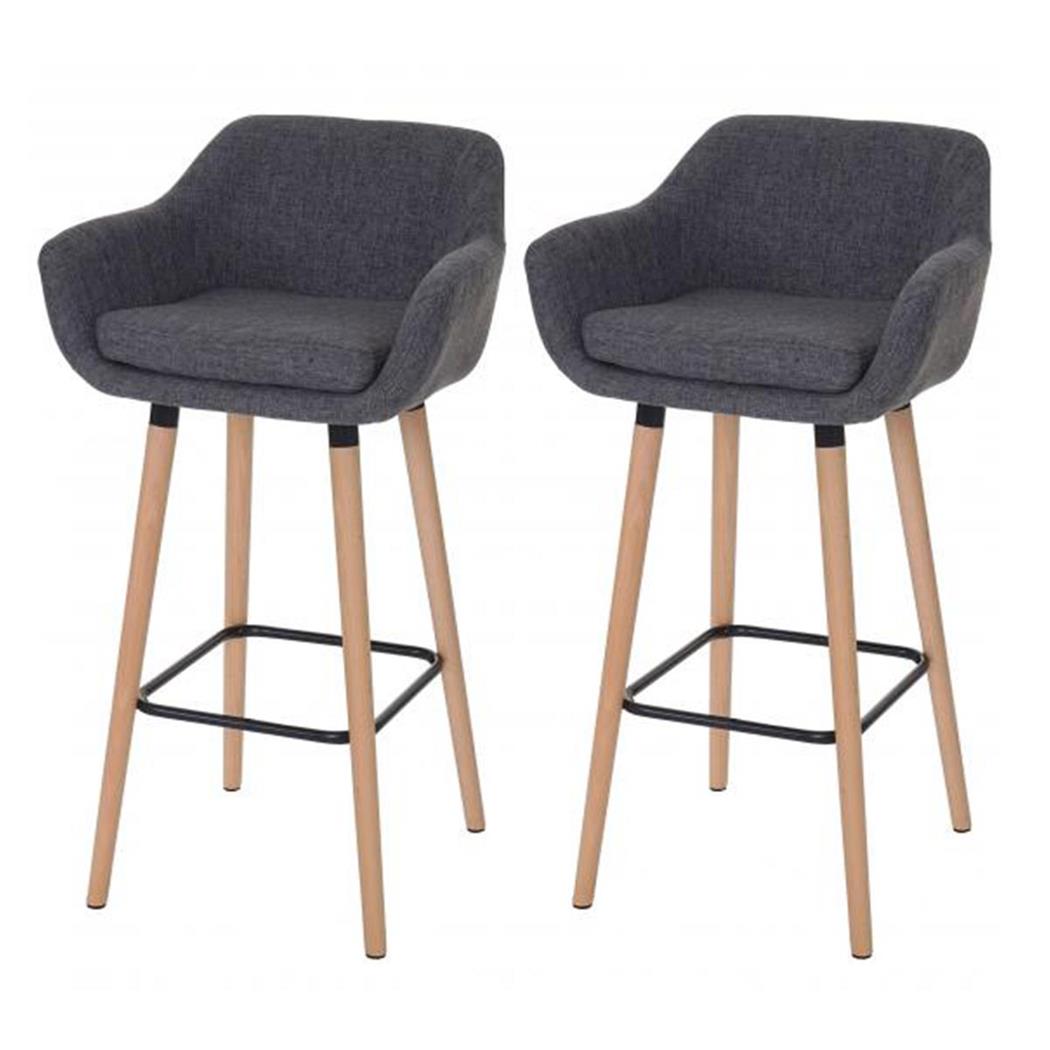 Set van 2 barkrukken KOPENHAGEN, Scandinavisch Ontwerp uit Massief Hout, met Grijze Stof