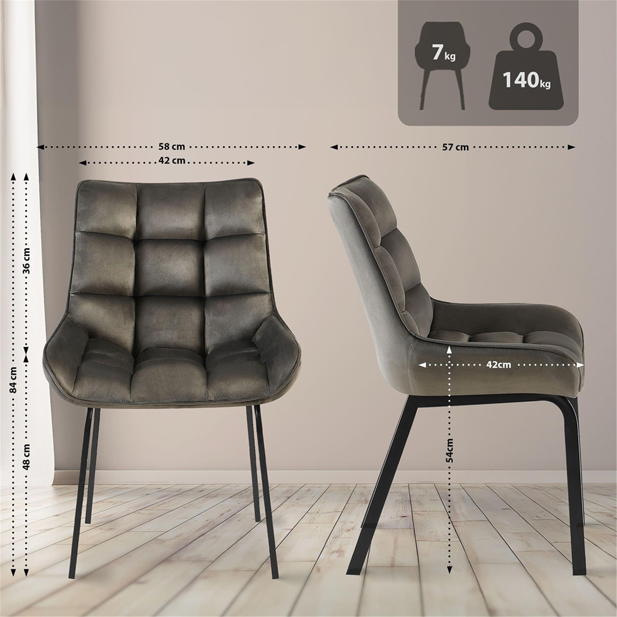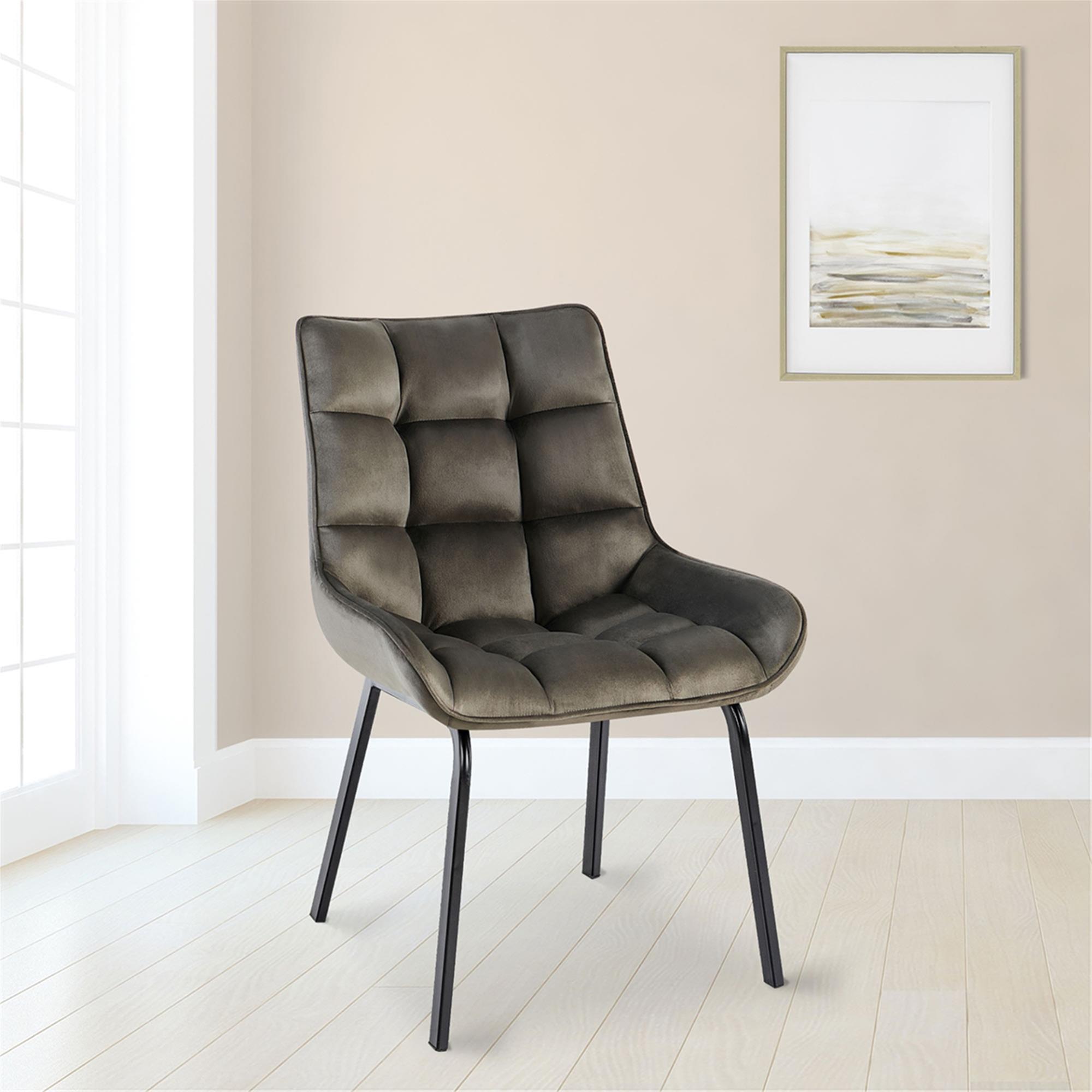 Set van 2 Bezoekersstoelen TANGO, Gewatteerd, Zwarte Poten, Donkergrijze Fluwelen Stof
