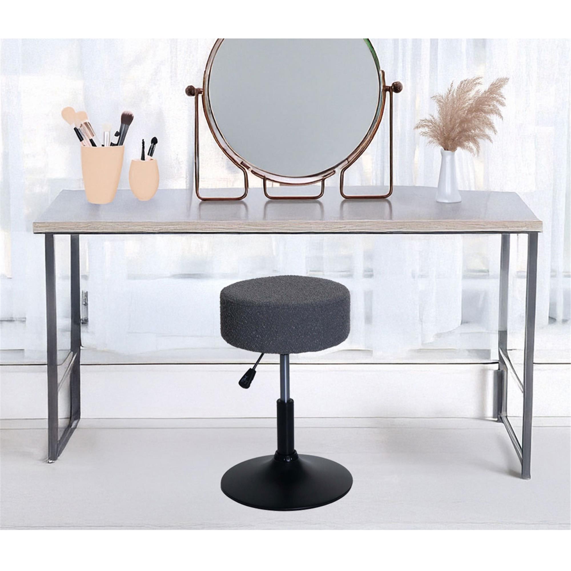 Het onderstel is een ronde metalen voet en de ronde zitting is bekleed met hoogwaardig en zacht aanvoelende stof. Alle materialen zijn gemakkelijk te onderhouden en schoon te maken.