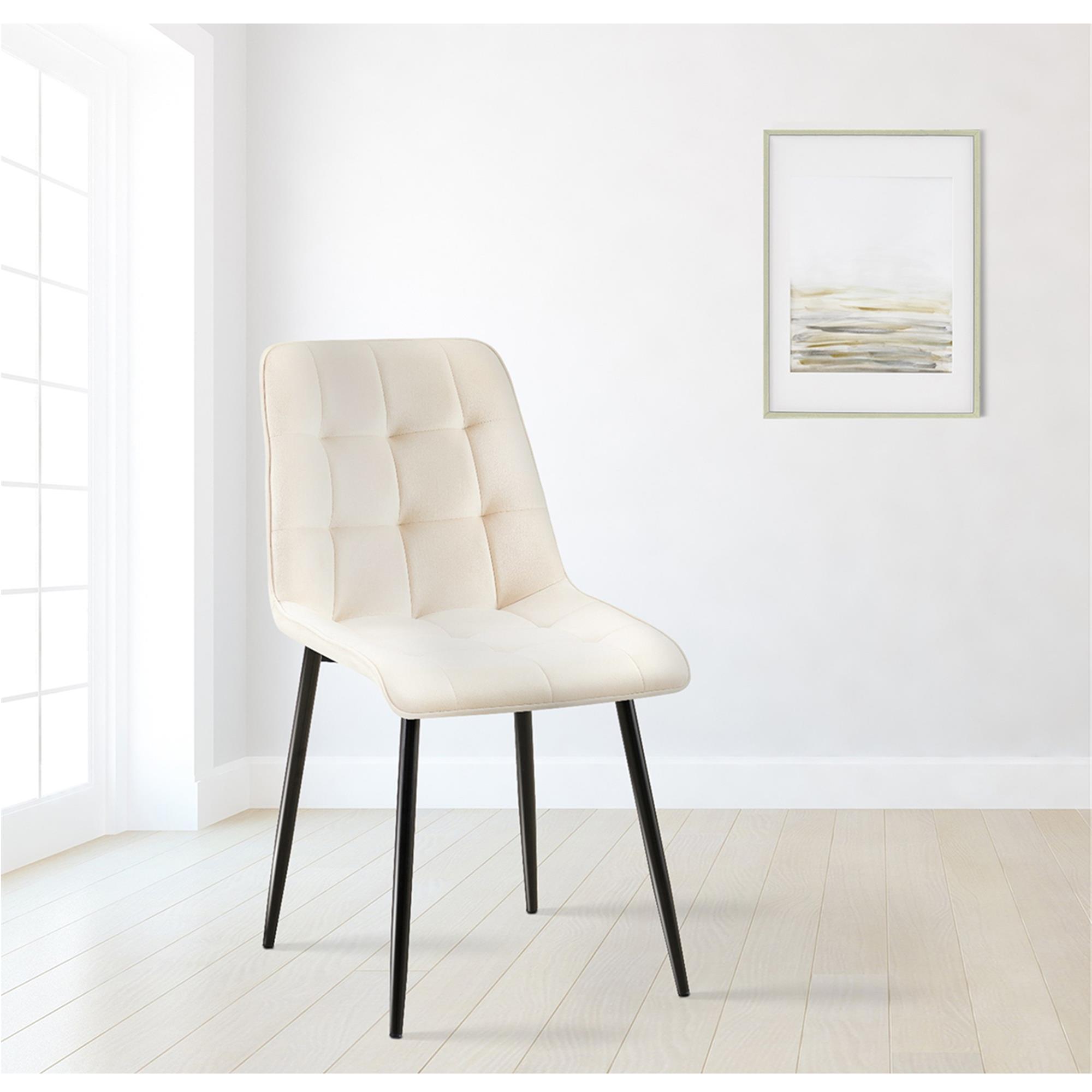 Set van 2 eetkamerstoelen HALIMA, met Mooi Stikselontwerp, Zwarte Poten, Beige Fluweel