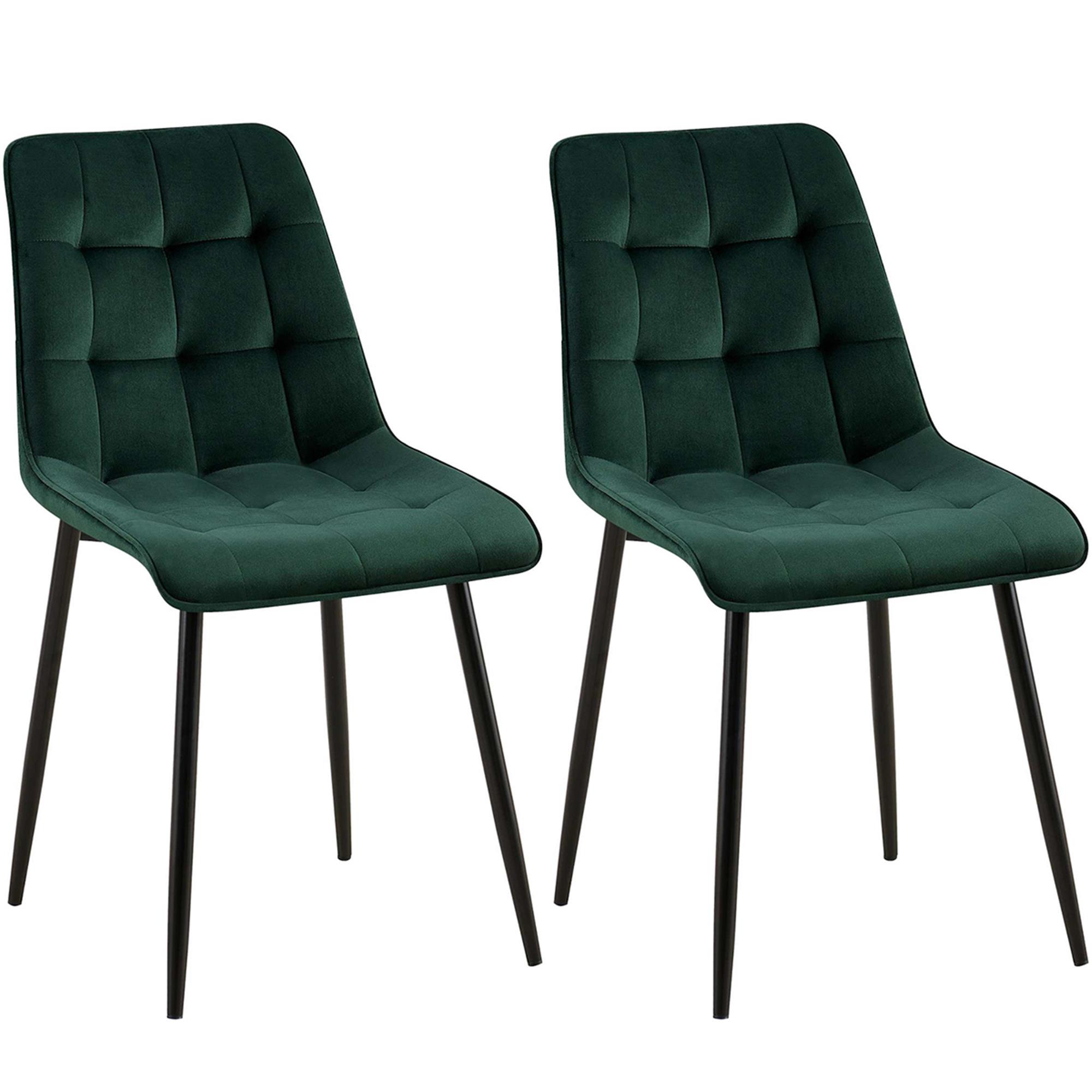 Set van 2 eetkamerstoelen HALIMA, met Mooi Stikselontwerp, Zwarte Poten, Groen Fluweel