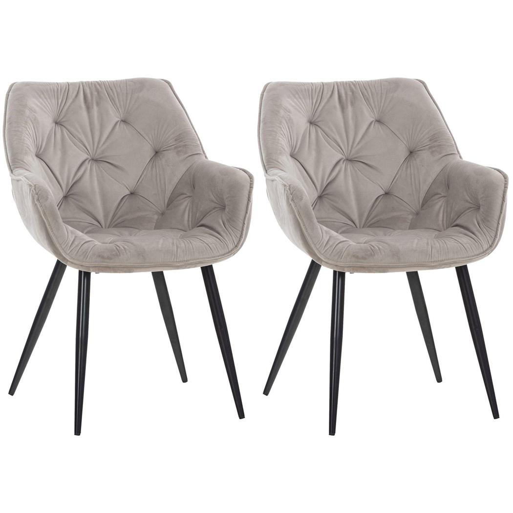 Set van 2 Eetkamerstoelen TEXAS, Elegant Retro Design, Zwarte Metalen Poten, Lichtgrijs Fluweel