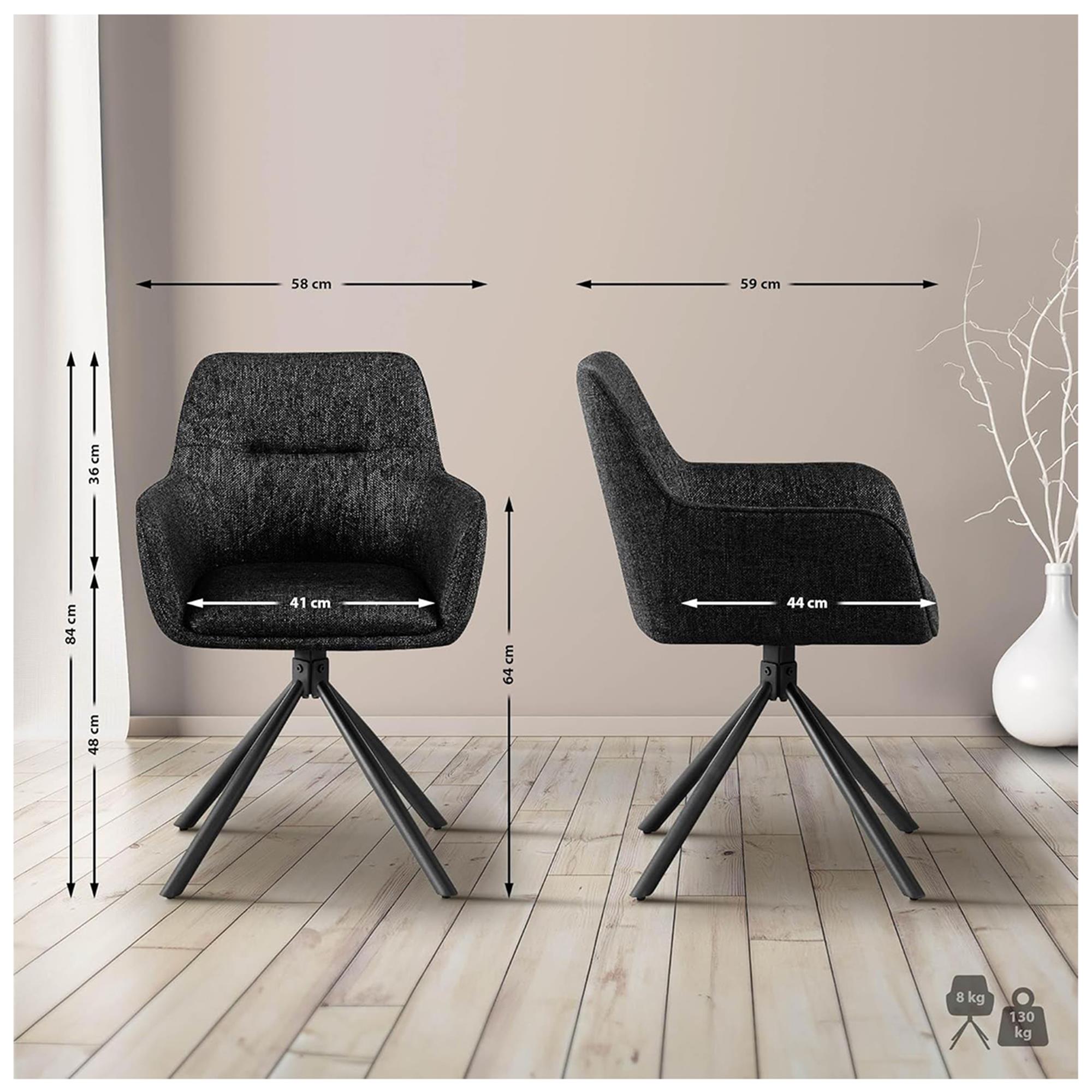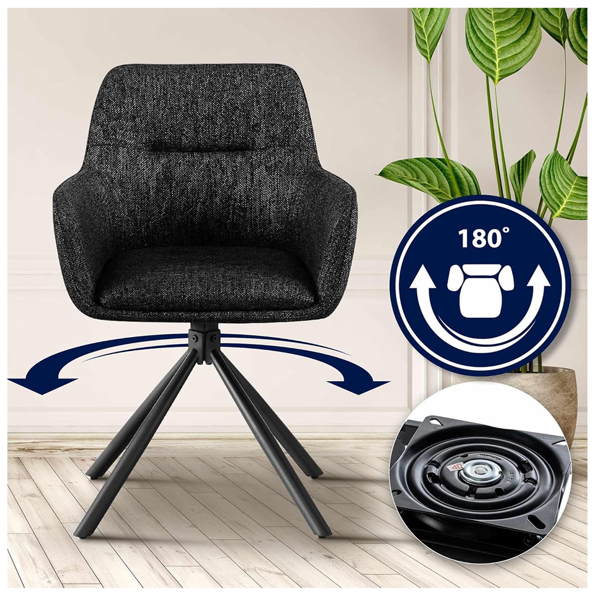 Set van 2 vergaderstoelen COREY, Retro Design, Draaibaar met Zwarte Poten, Zwarte Stof