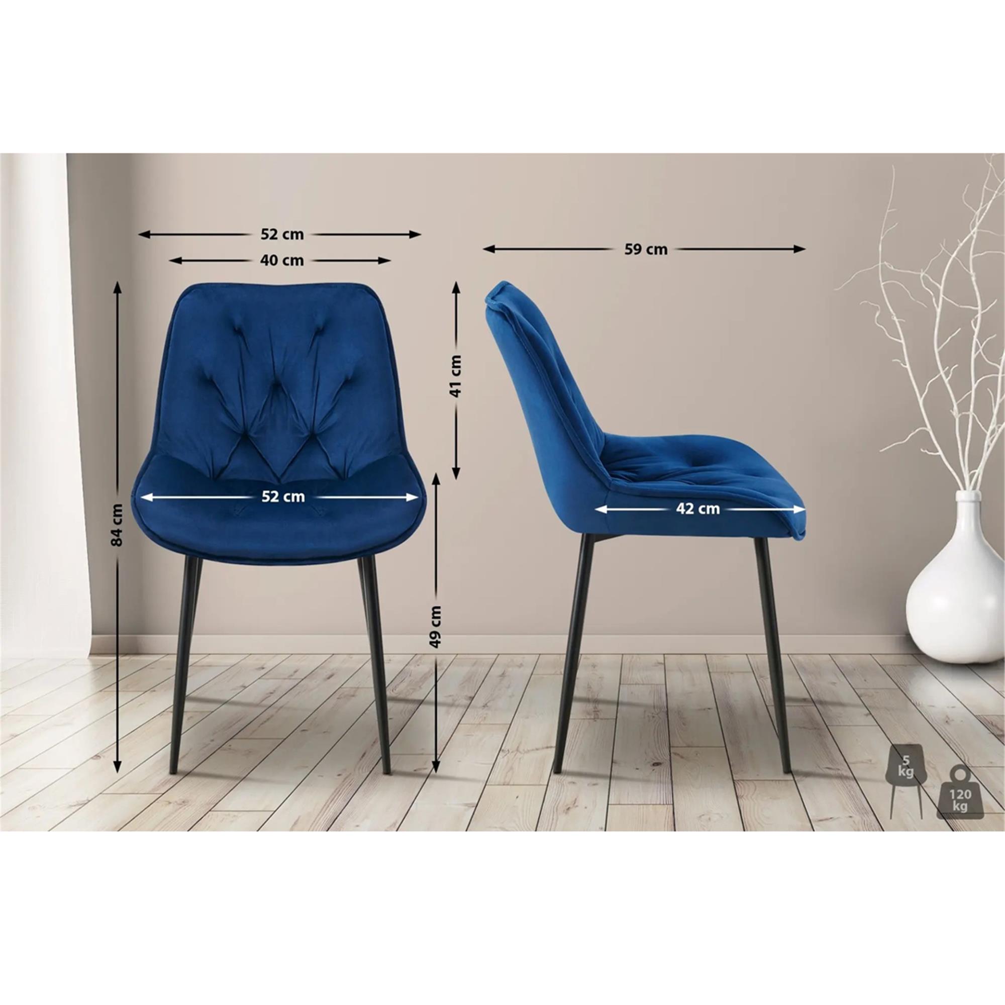Set van 2 Vergaderstoelen GRACE, met Mooi Stikselontwerp, Zwarte Poten, Blauw Fluweel