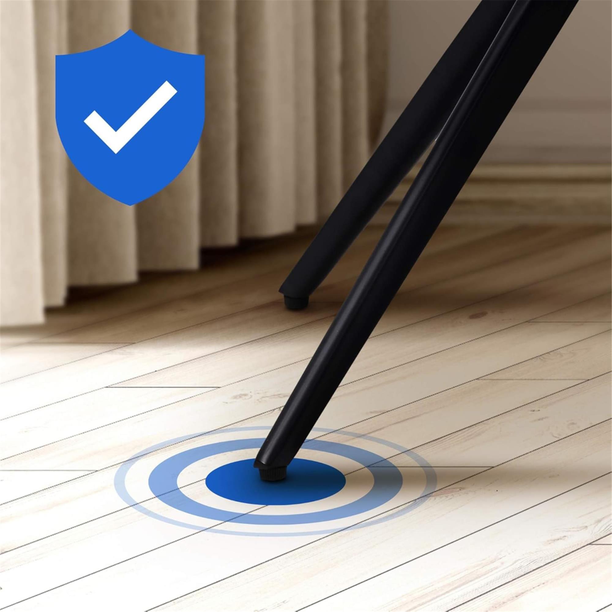 De zwarte metalen poten zorgen voor een unieke touch die doet denken aan retro meubelen. Ze zijn uitgerust met verstelbare vloerbeschermers die u een perfecte stabiliteit garanderen. Voor het detail hebben we hem ook voorzien van vloerbeschermers onder de poten om uw vloer te beschermen tegen krassen.