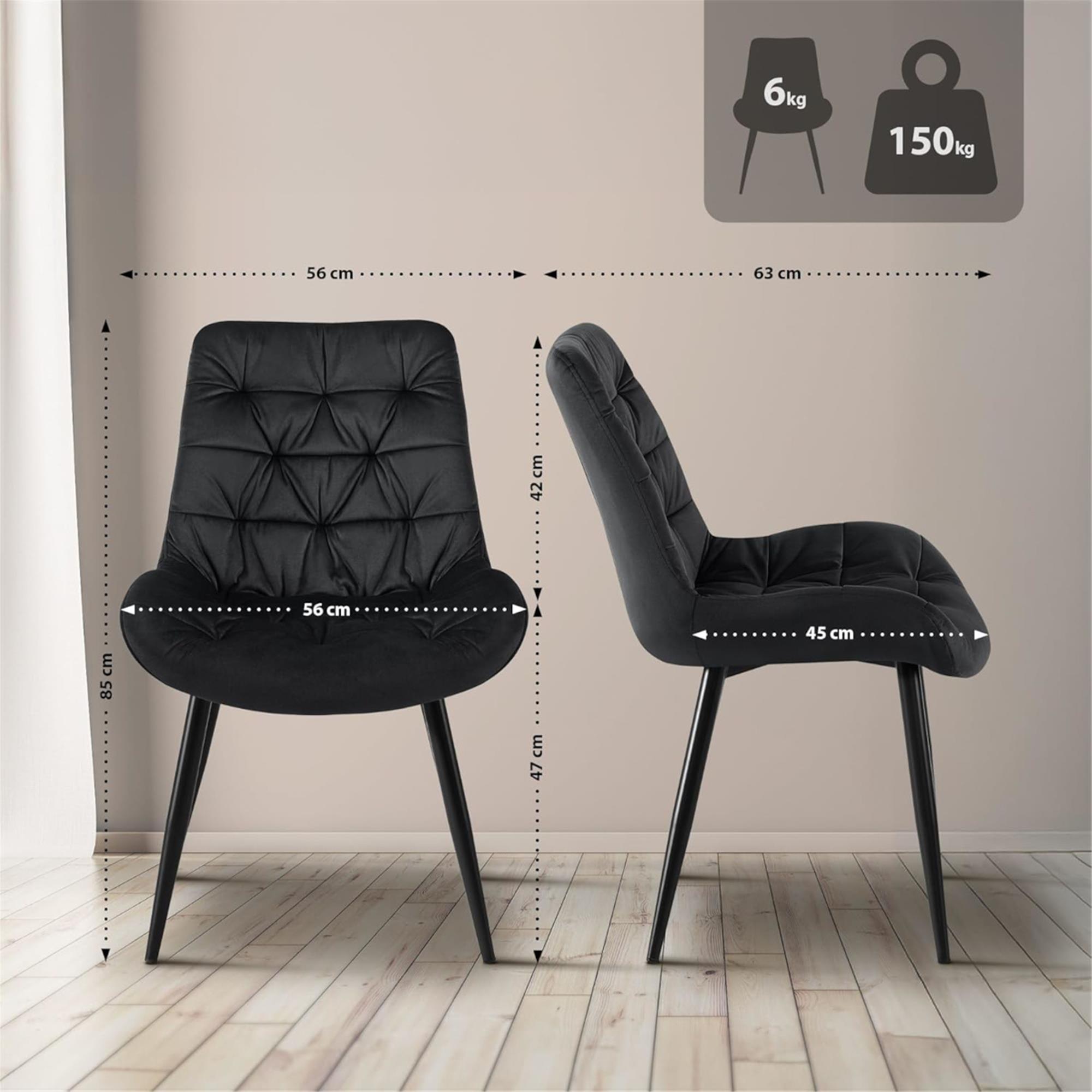 Set van 2 Vergaderstoelen LENNY FLUWEEL, met Mooi Stikselontwerp, Zwarte Poten, Zwart