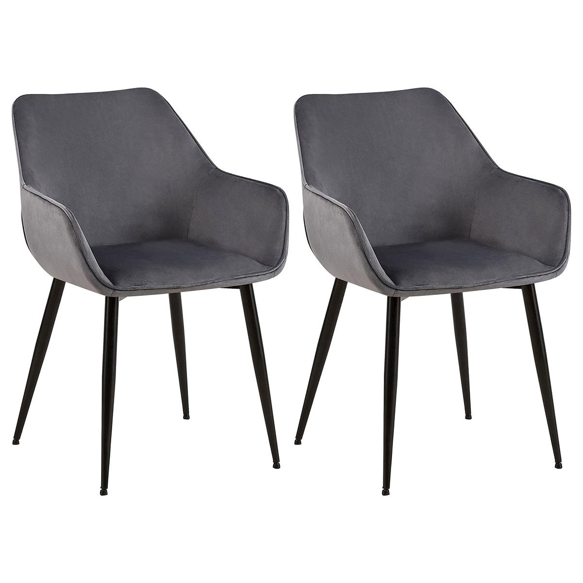 Set van 2 Vergaderstoelen MAYA, Comfortabel en Stabiel met Metalen Poten, Bekleed met Donkergrijs Fluweel