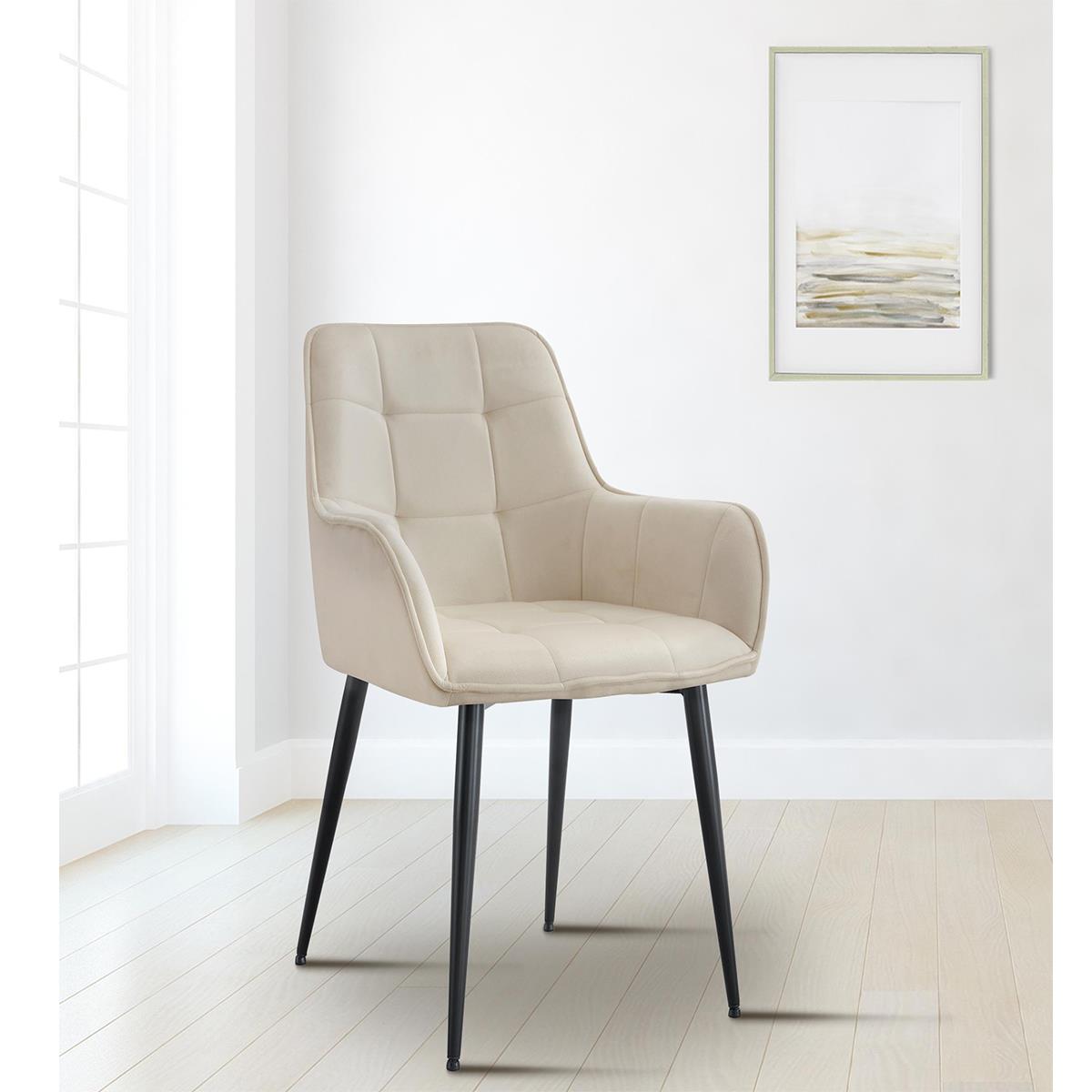 Set van 2 Vergaderstoelen RUFUS, Elegant Retro Design, Zwarte Metalen Poten, Beige Fluweel
