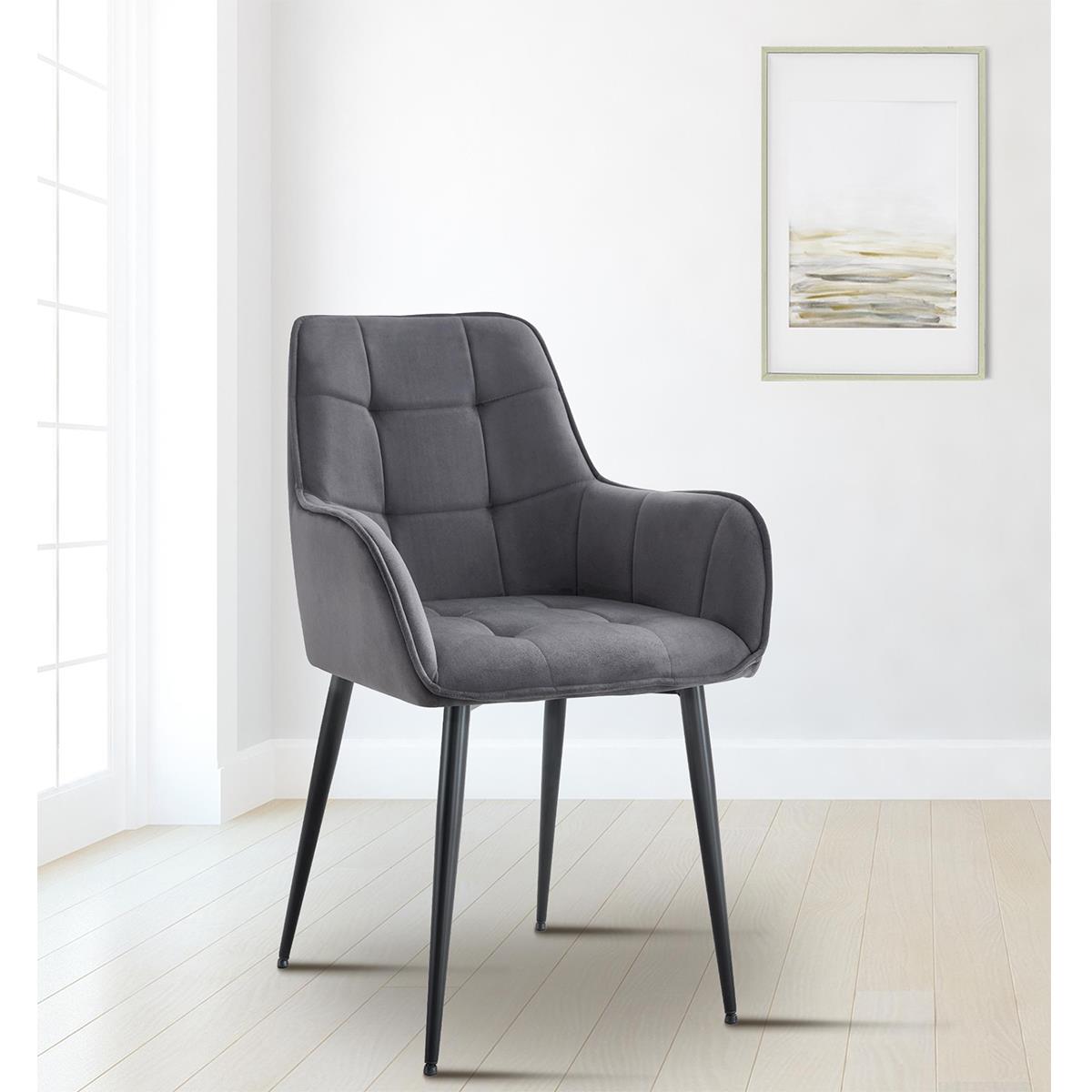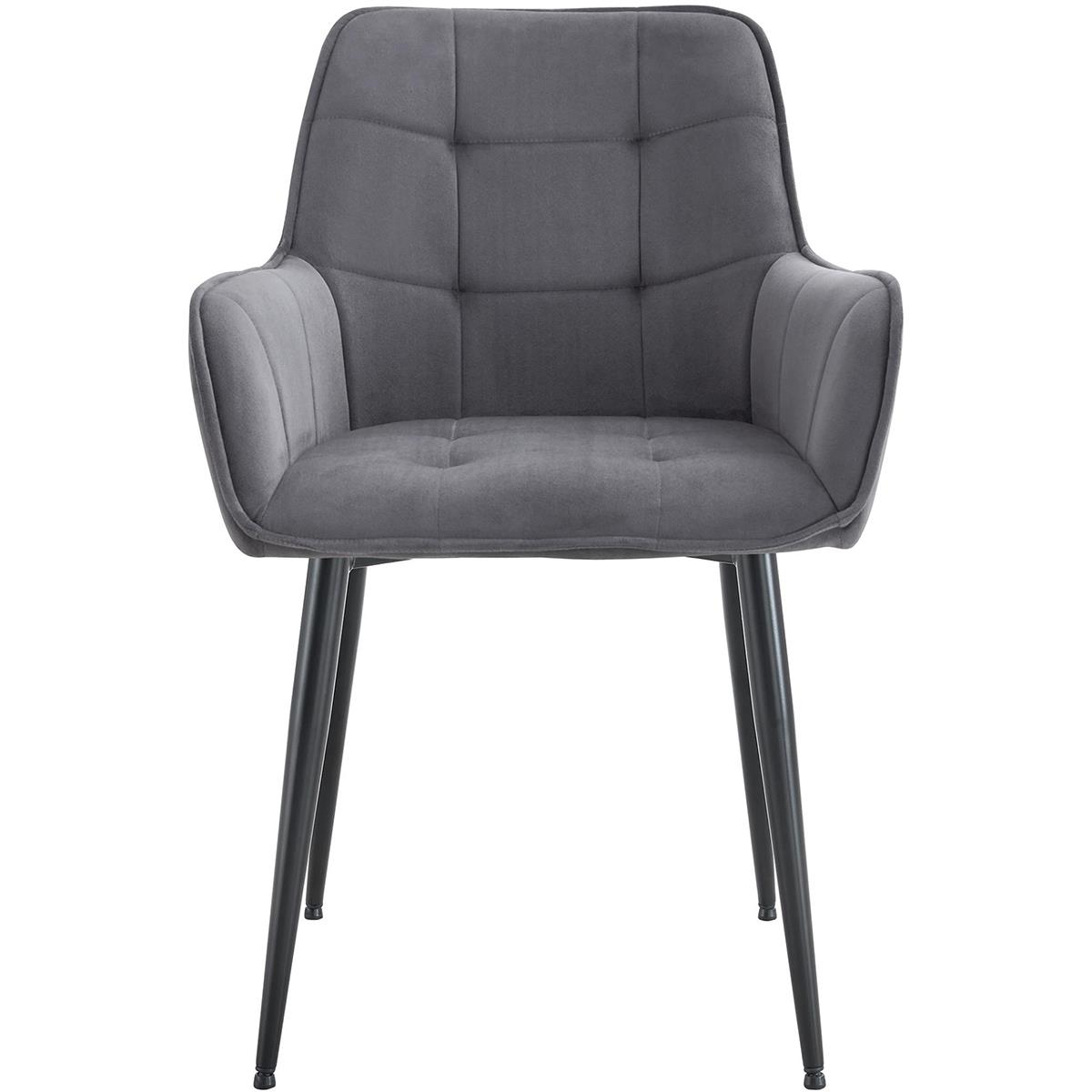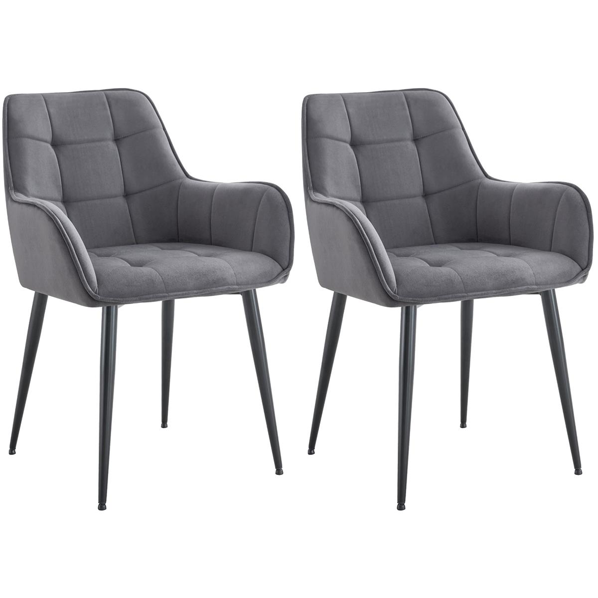 Set van 2 Vergaderstoelen RUFUS, Elegant Retro Design, Zwarte Metalen Poten, Donkergrijs Fluweel